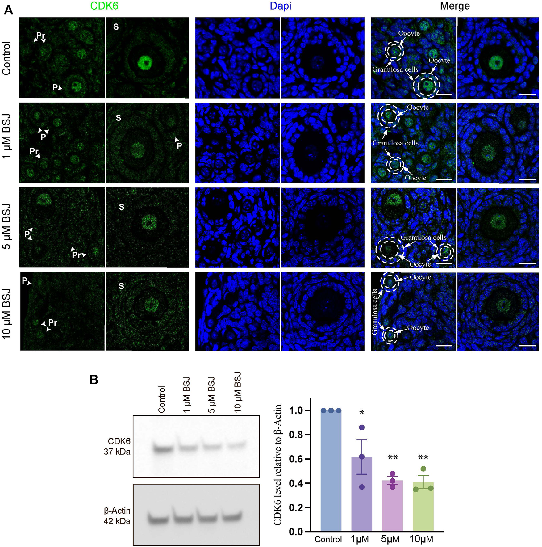 BSJ reduced the level of CDK6 protein in mouse ovaries