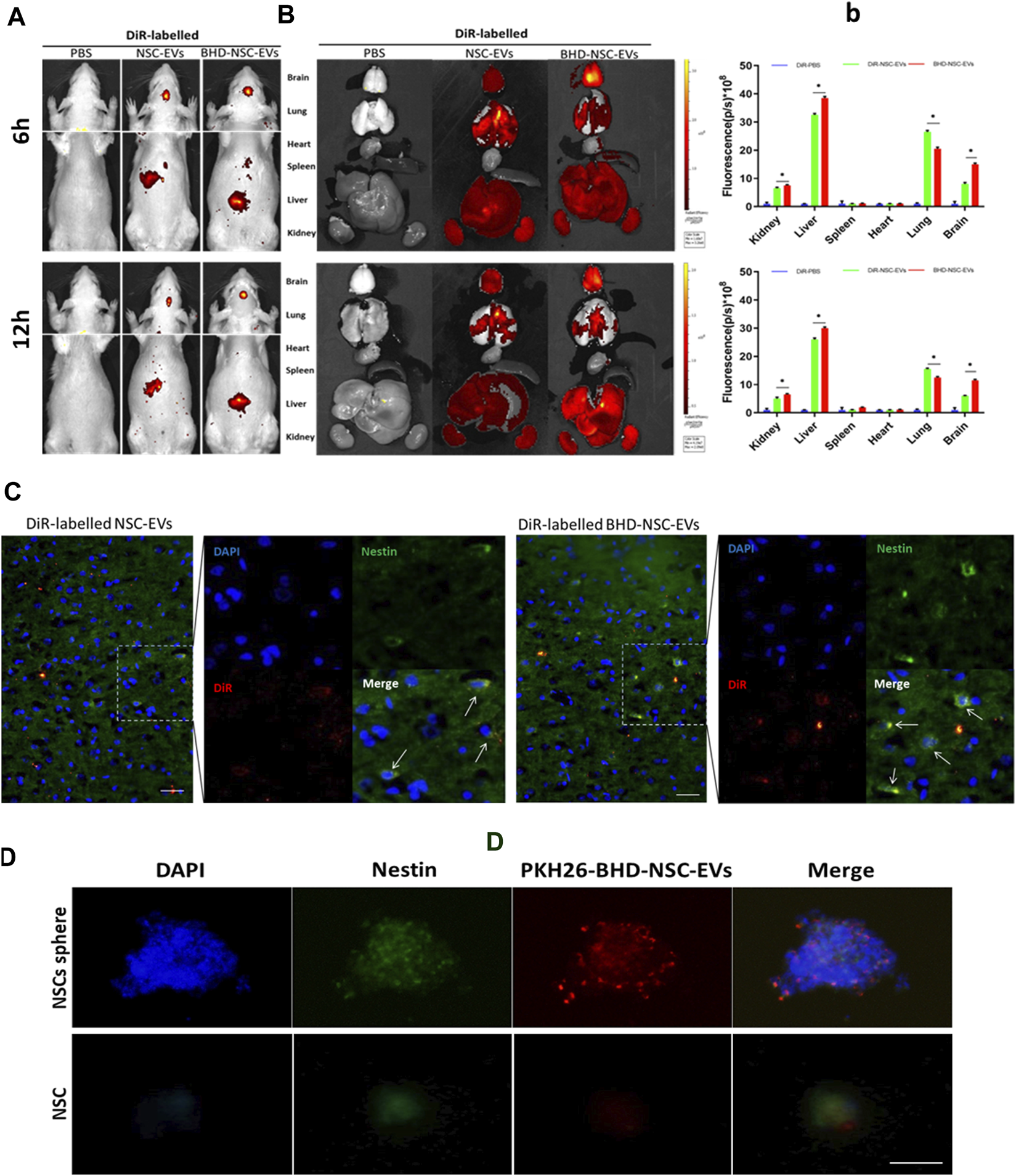 3.3 BHD-NSC-EVs can enrich in brains and be taken up by NSCs