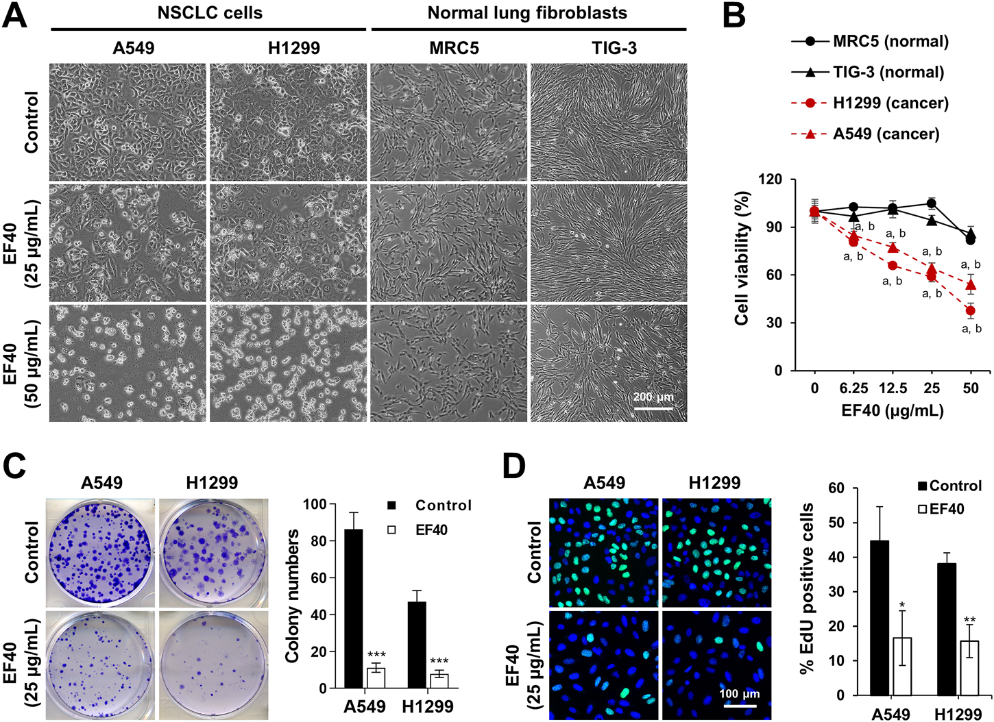 EF40 is cytotoxic to NSCLC cells but not to normal lung fibroblasts