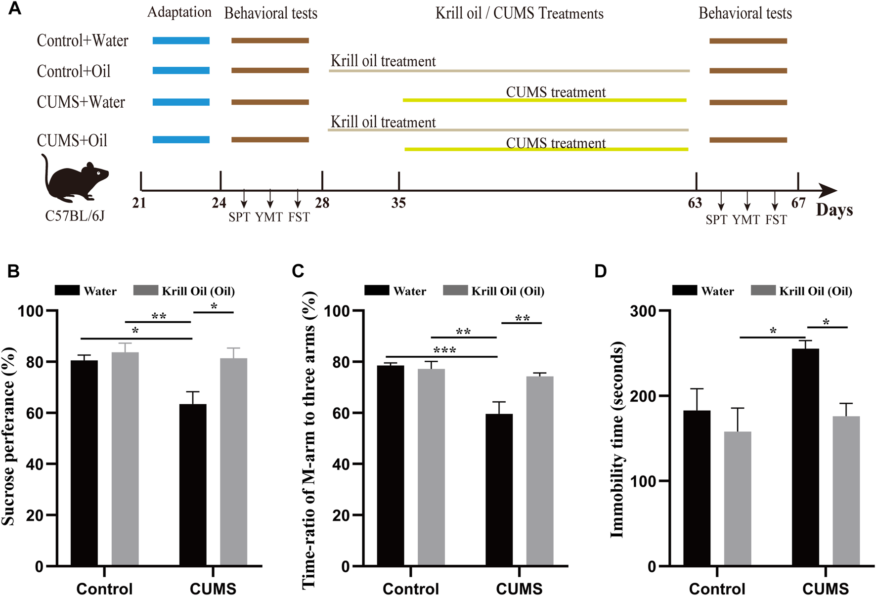 CUMS-induced depression-like behaviors were ameliorated by krill oil in mice