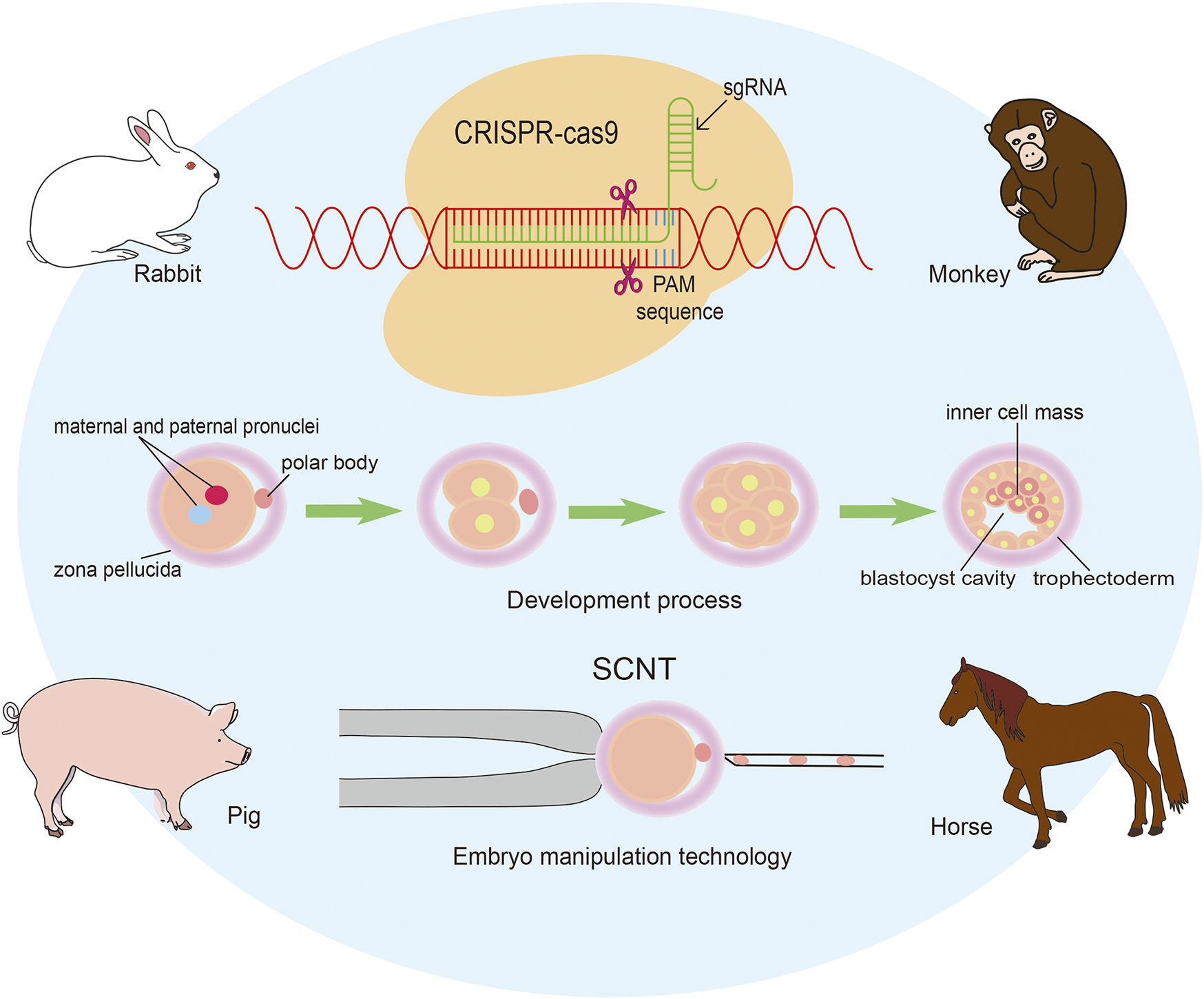 gene editing, CRISPR/Cas9, embryo, development, pig, rabbit, monkey