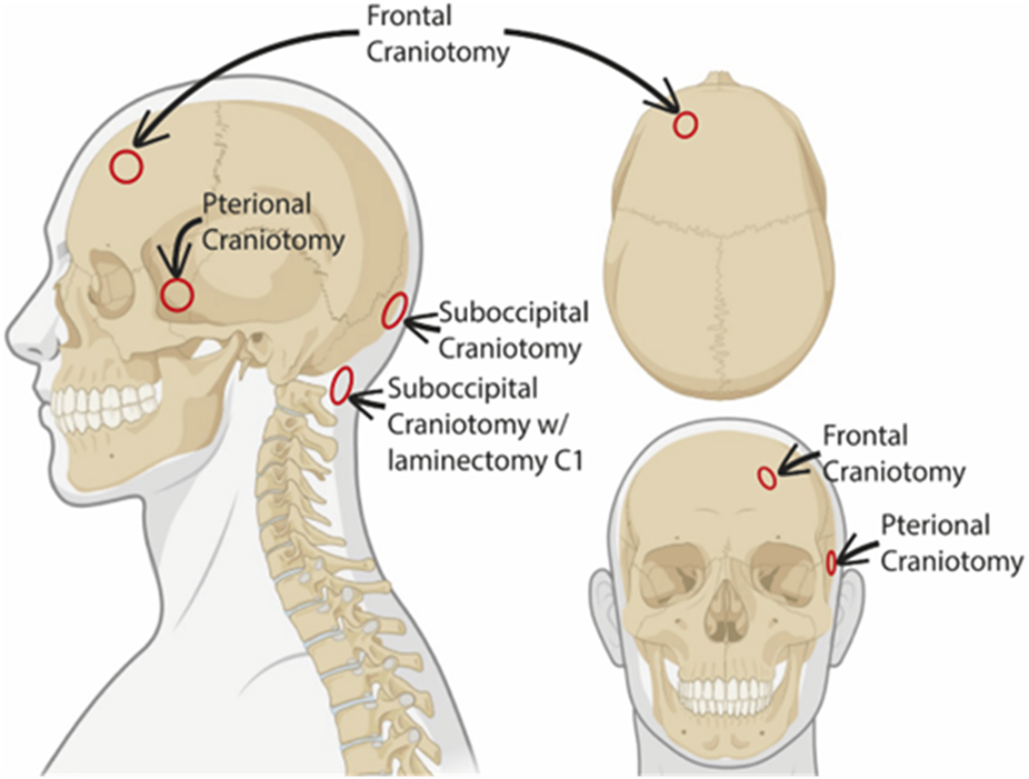 - Suboccipital craniotomy with laminectomy posterior C1 where dura was obtained at the posterior C1 level (n = 1).
