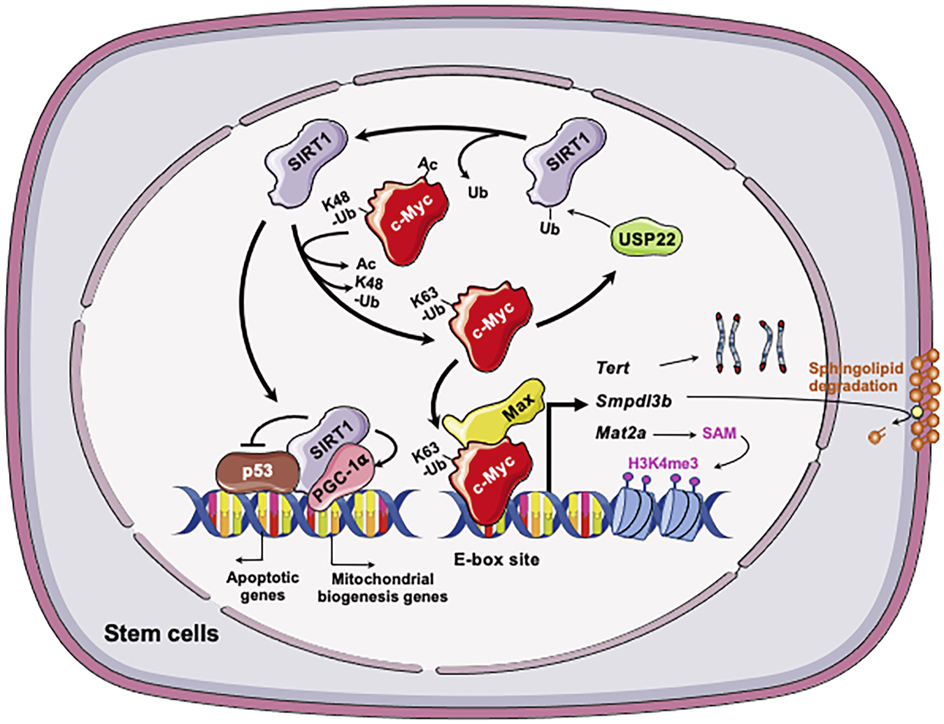 Keywords: c-Myc, SIRT1, stem cells, deacetylation, pluripotency, differentiation, c-Myc/Max heterodimer, positive feedback loop