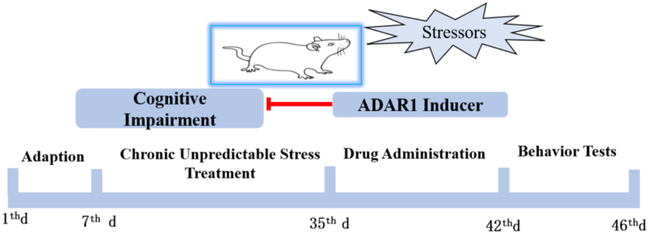 ADAR1 inducer alleviates spatial and non-spatial cognitive impairment in mice exposed to chronic unpredictable stressors.