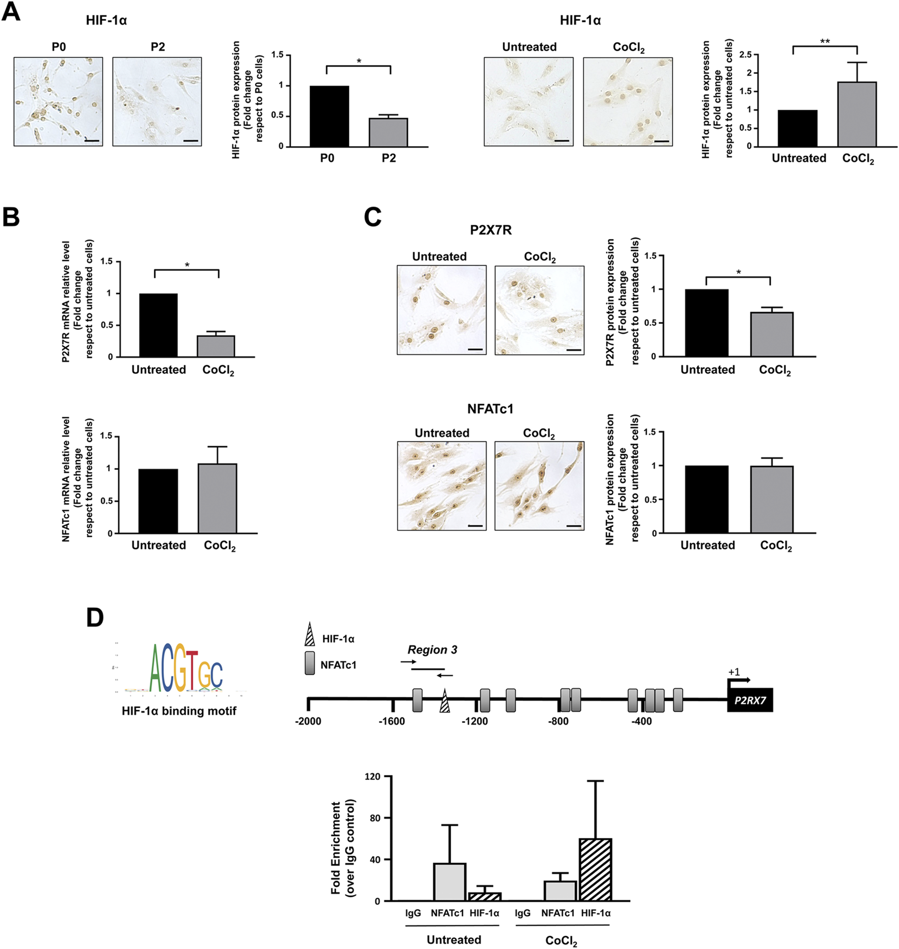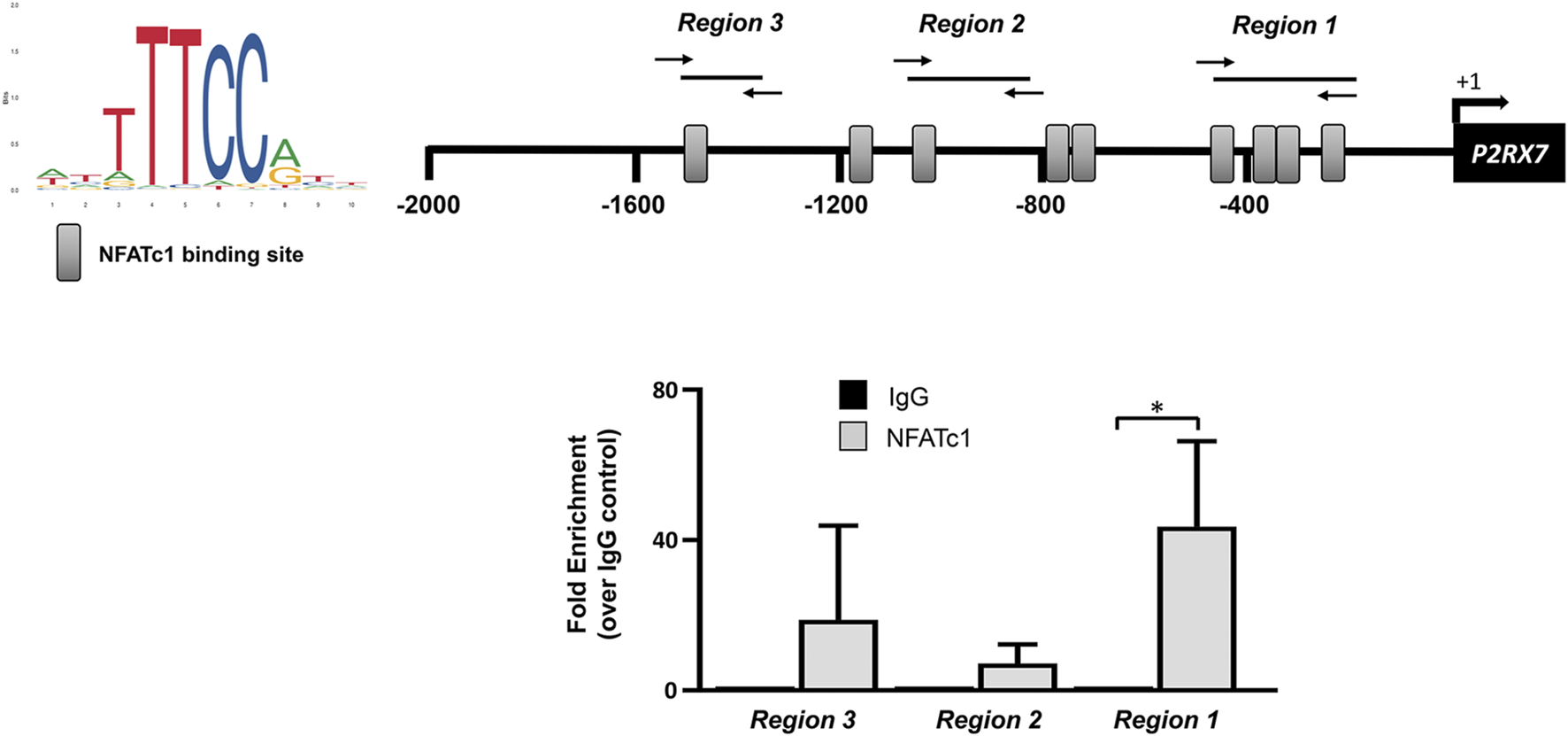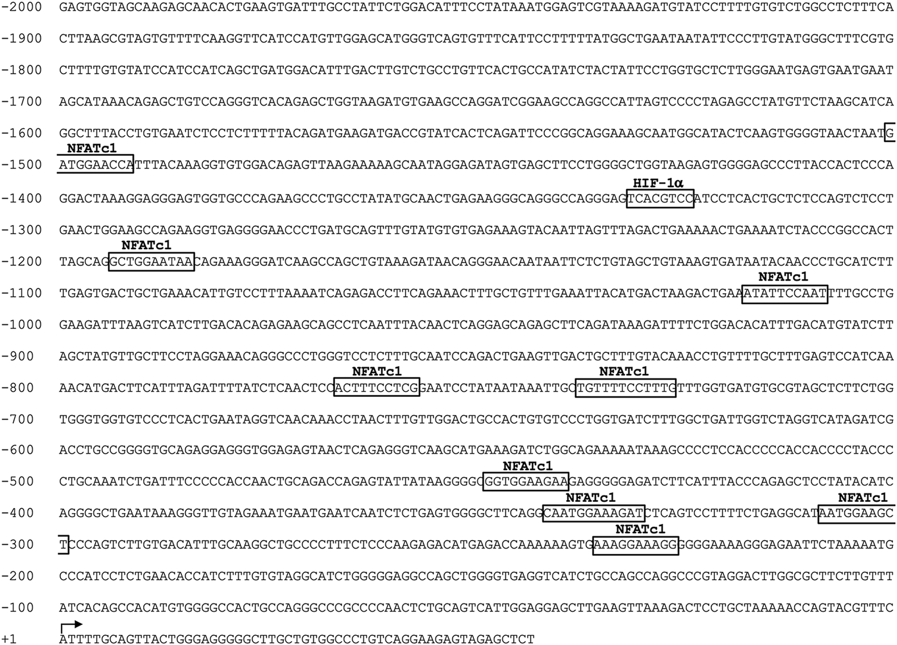 NFATc1- and HIF-1α-binding sites within the P2RX7 promoter region (−2000/+1) were predicted by the JASPAR Core database (http://jaspar.genereg.net) with a relative score threshold of 85%.