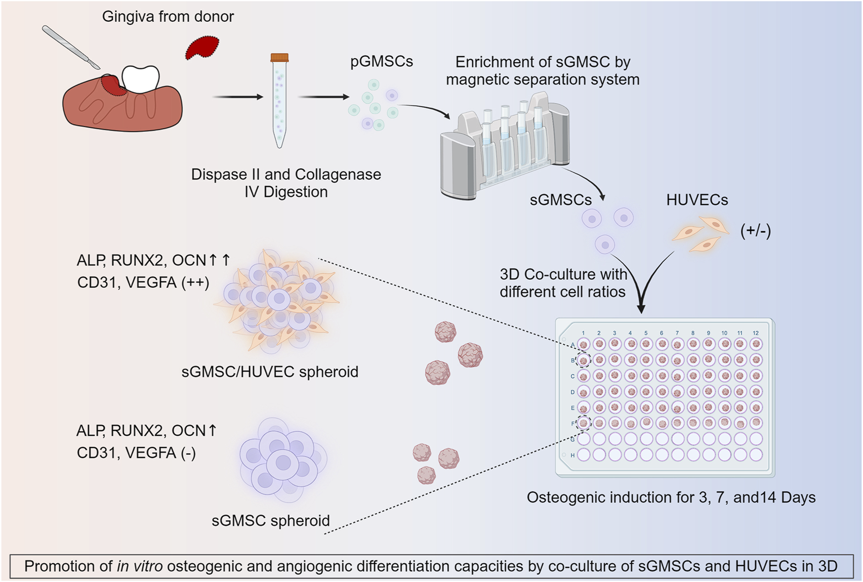 Liu Y, Chen P, Zhou T, Zeng J, Liu Z, Wang R, Xu Y, Yin W and Rong M (2024) Co-culture of STRO1 + human gingival mesenchymal stem cells and human umbilical vein endothelial cells in 3D spheroids: enhanced in vitro osteogenic and angiogenic capacities. Front. Cell Dev. Biol. 12:1378035. doi: 10.3389/fcell.2024.1378035