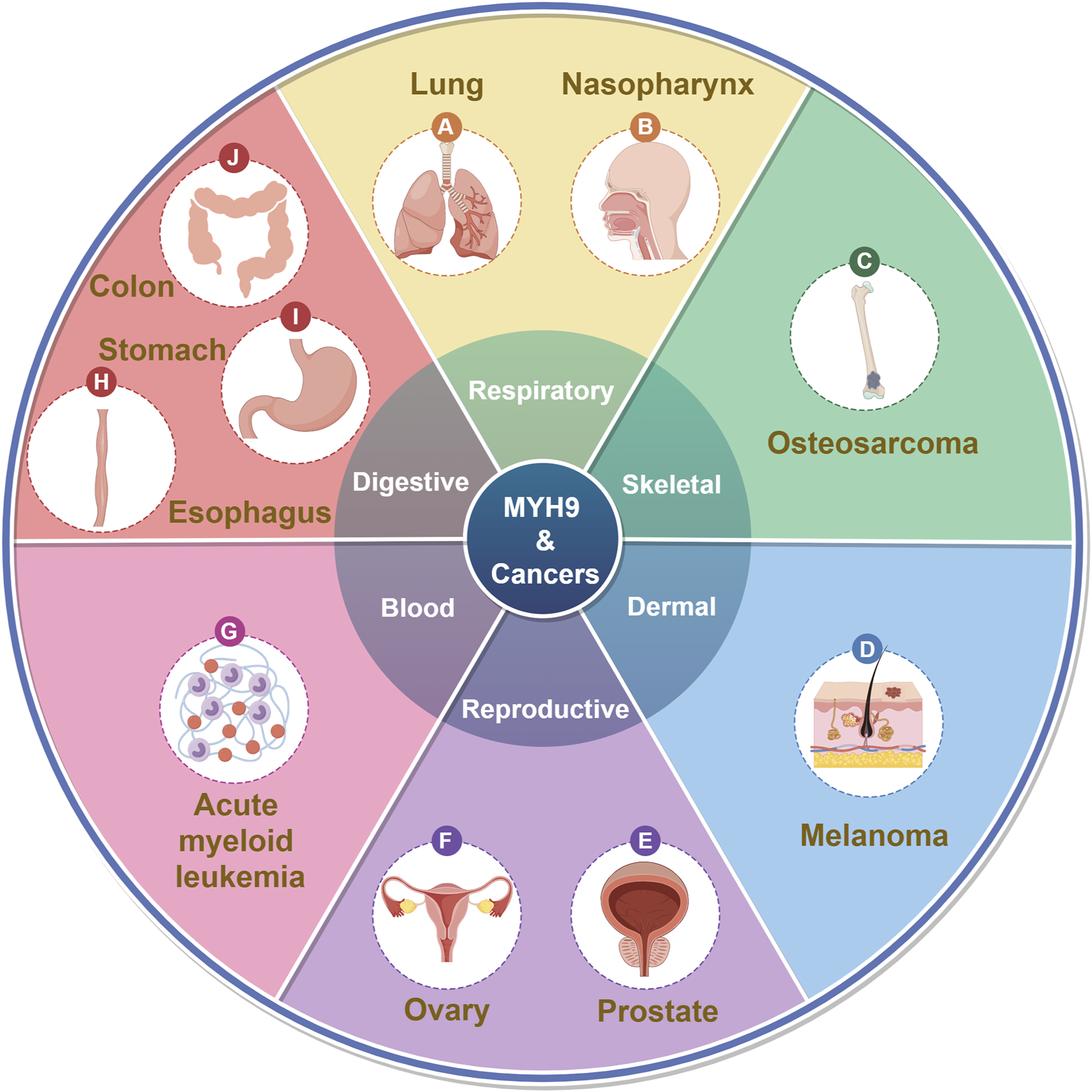 MYH9 and cancers. (By Figdraw).