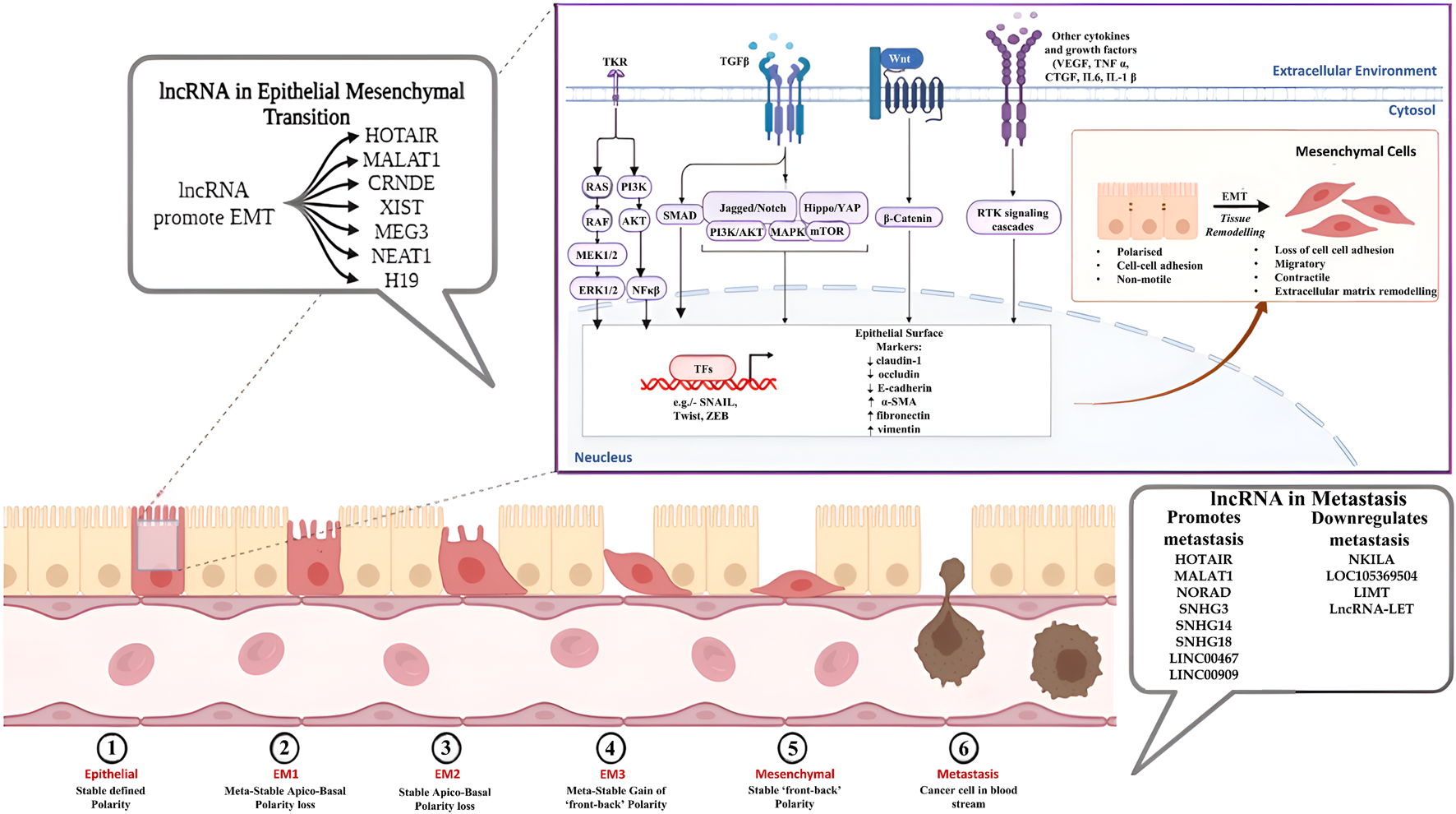LncRNAs in epithelial-mesenchymal transition.