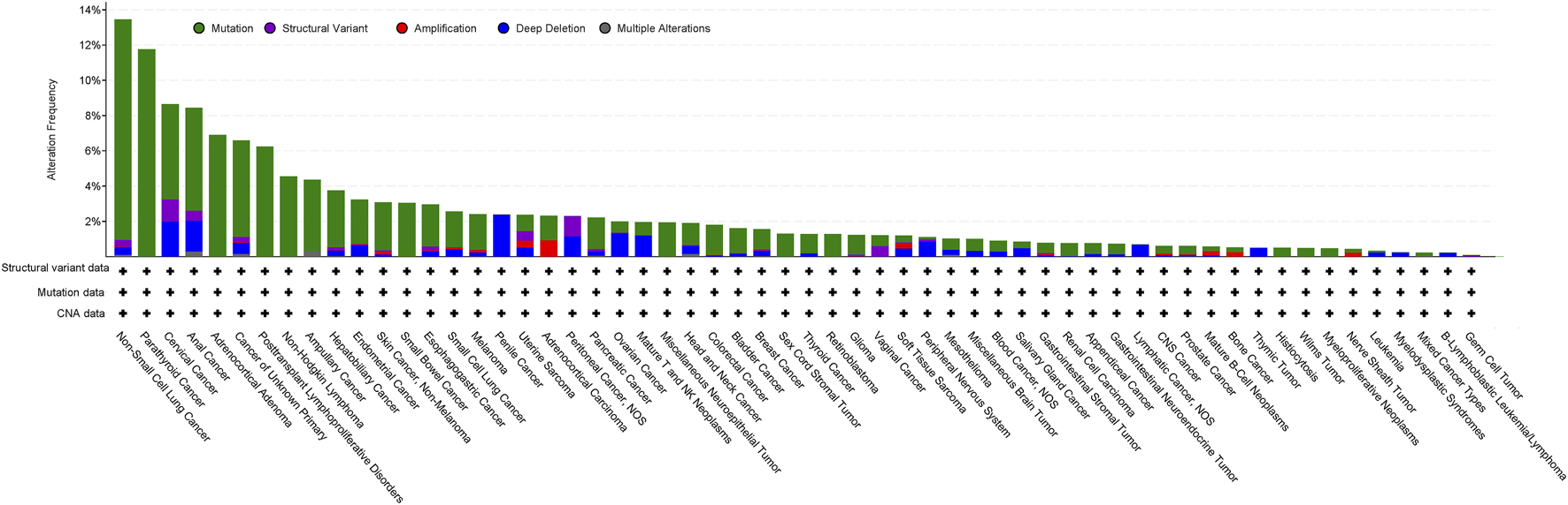 Figure 1. Analysis of the frequency of STK11/LKB1 mutations in cancer using the AACR project GENIE data set (v15.1) via cBioPortal (http://cbioportal.org) (access date 5th June 2024).