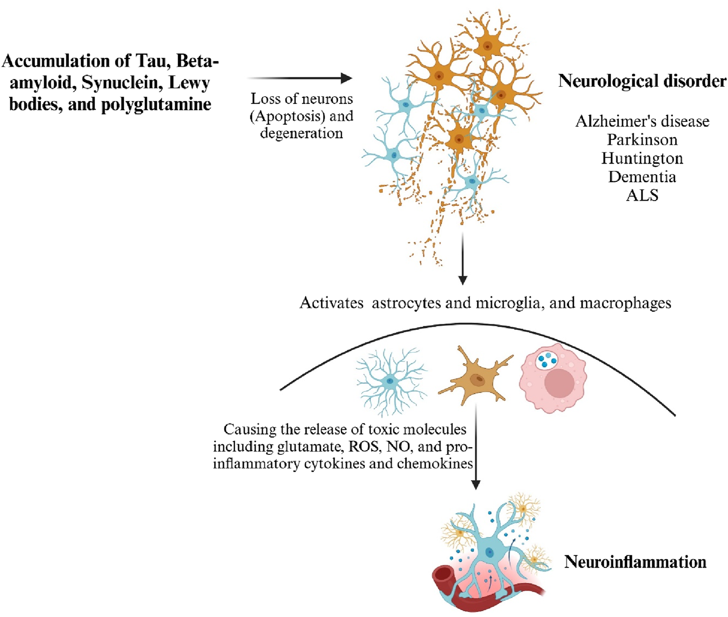 In conclusion, neuroinflammation, driven by the activation of microglia, astrogliosis, and other key pathways, plays a significant role in neurodegeneration. Pharmacological modulation of neuroinflammation may offer a therapeutic strategy for treating neurodegenerative diseases.