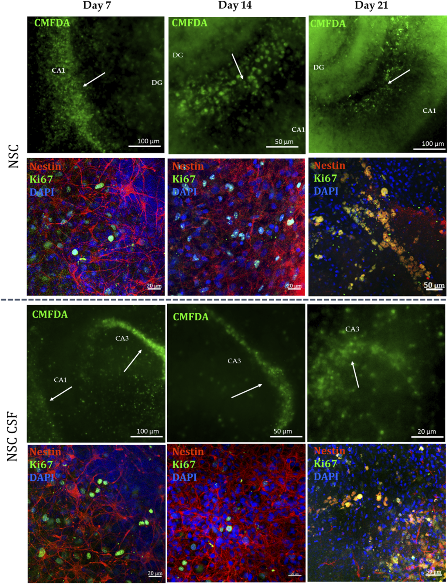 3.2 Analysis of neurogenic and neuroprotective potential of hNSCs pretreated with CSF in the presence of rat organotypic hippocampal slice culture