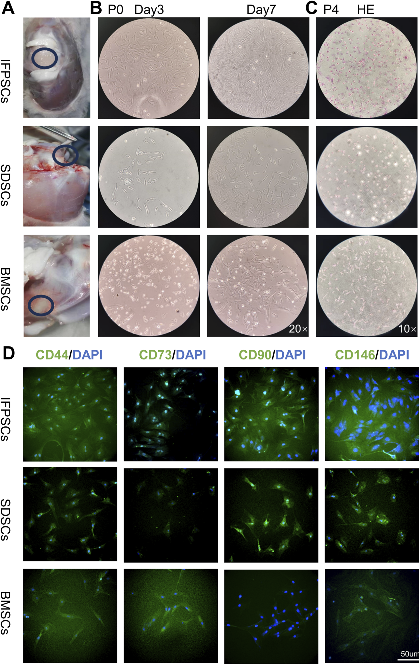 3.1 Isolation, culture, and phenotypic characterization of IFPSCs, SDSCs, and BMSCs