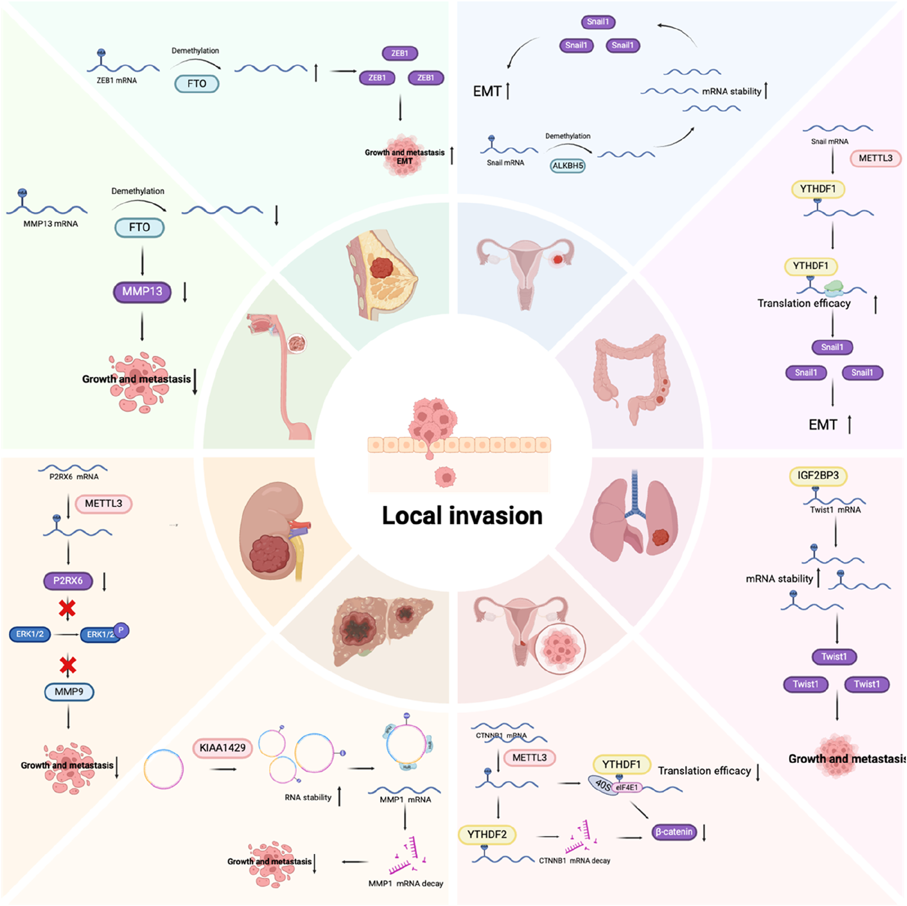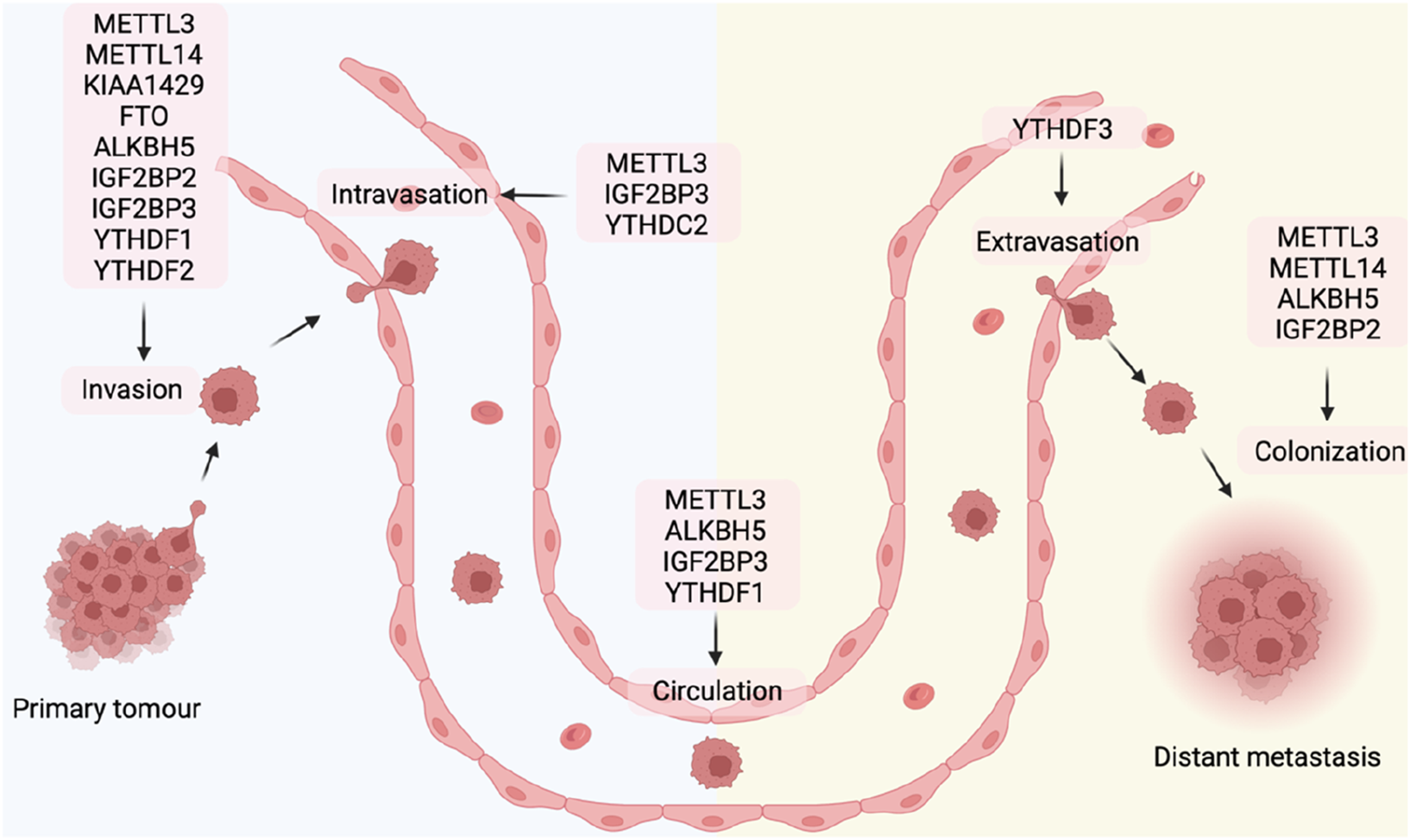 The role of m6A regulators in the invasion stage of tumor metastasis.