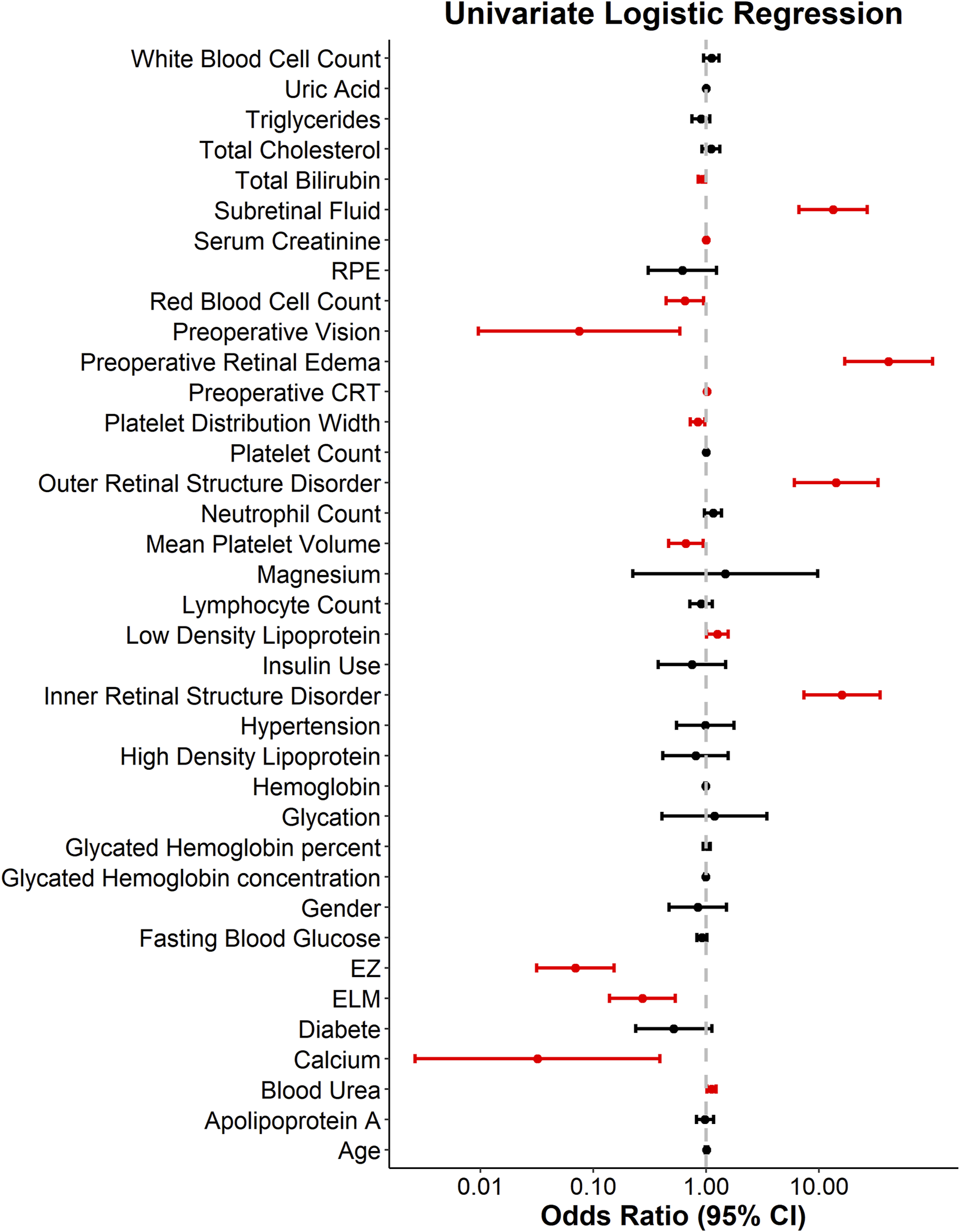 Based on this, this study aims to develop a predictive model by collecting pre-treatment ocular parameters and blood-based biomarkers as predictor variables, with post-treatment resolution of macular edema as the outcome variable. This model is expected to assist clinicians in identifying potential non-responders at the initial stage of diagnosis and treatment planning, allowing for more targeted and personalized intervention strategies.