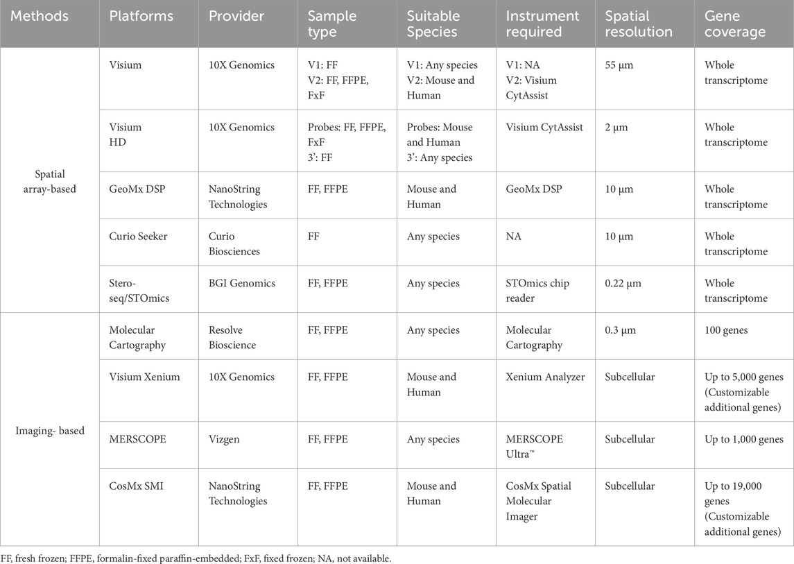 Lim, H. J., Wang, Y., Buzdin, A., and Li, X. (2025). A practical guide for choosing an optimal spatial transcriptomics technology from seven major commercially available options. BMC Genomics 26, 47. doi:10.1186/s12864-025-11235-3