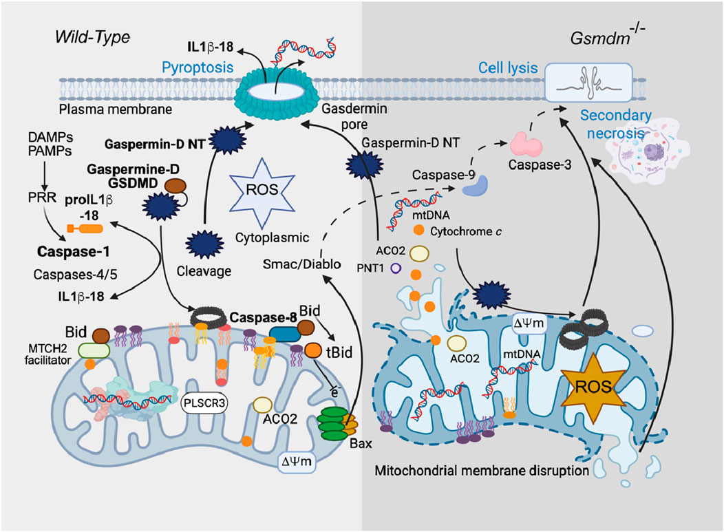Miao, R., Jiang, C., Chang, W. Y., Zhang, H., An, J., Ho, F., et al. (2023). Gasdermin D permeabilization of mitochondrial inner and outer membranes accelerates and enhances pyroptosis. Immunity 56, 2523–2541 e8. doi:10.1016/j.immuni.2023.10.004