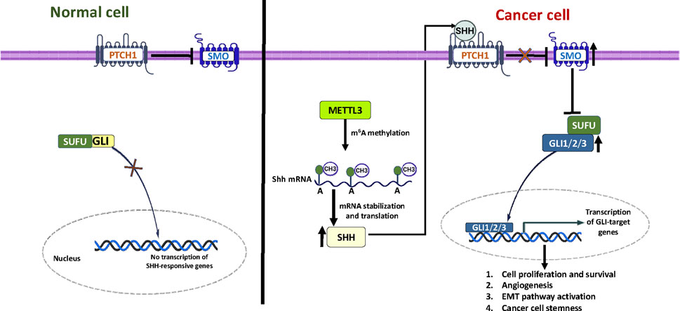 Zhang, Z. W., Teng, X., Zhao, F., Ma, C., Zhang, J., Xiao, L. F., et al. (2022). METTL3 regulates m6A methylation of PTCH1 and GLI2 in Sonic hedgehog signaling to promote tumor progression in SHH-medulloblastoma. Cell Rep. 41 (4), 111530. doi:10.1016/j.celrep.2022.111530