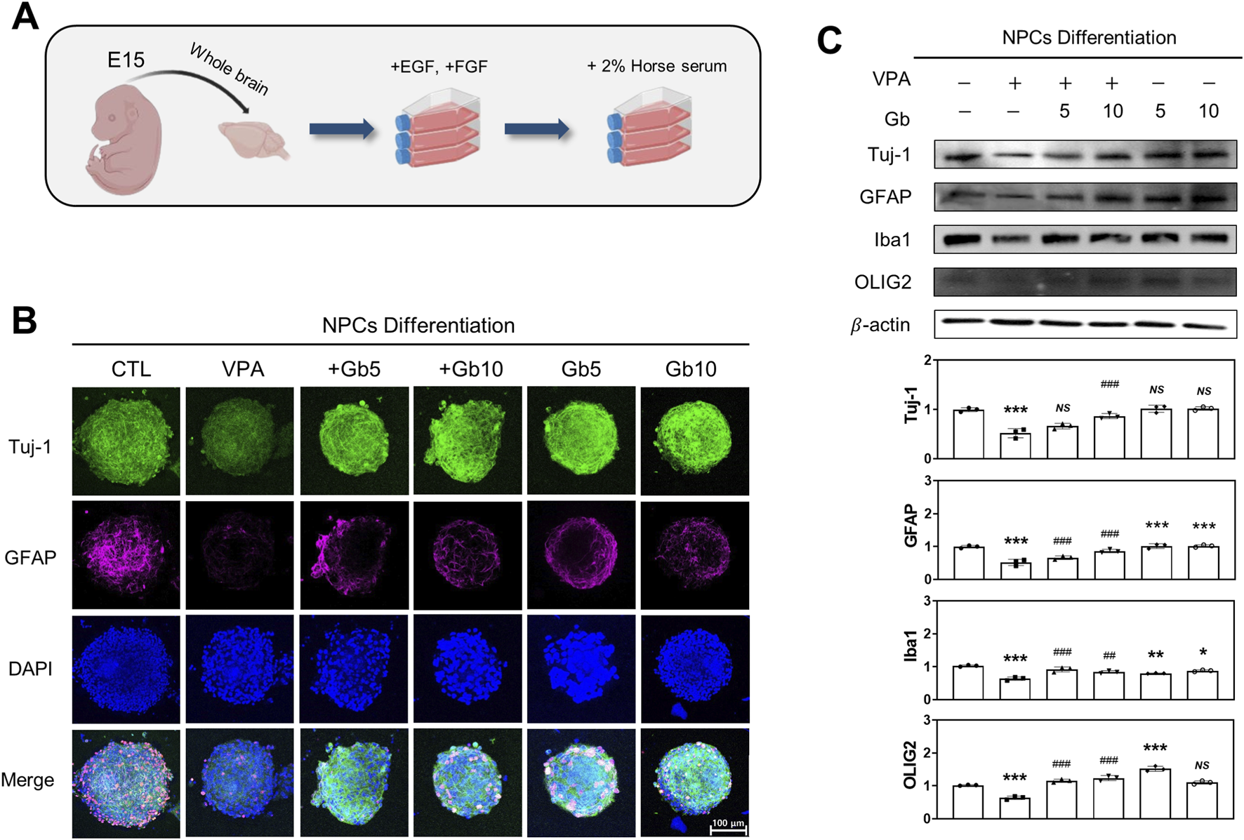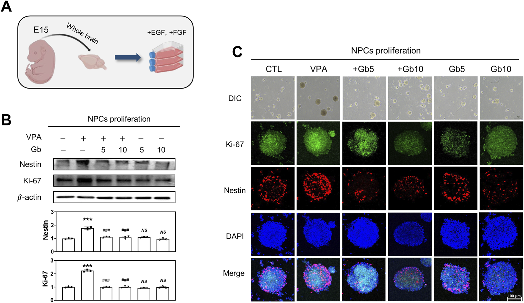 Gb extracts restore VPA-induced abnormalities in neural progenitor cell proliferation and differentiation in fetal mice