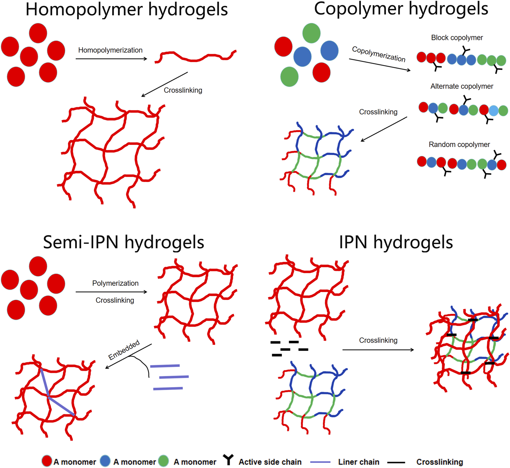Poly-N-isopropylacrylamide (PNIPAAm) is a thermosensitive polymer with thermoreversible gelatin characteristics. When the temperature of this polymer is higher than its critical solution temperature (32 °C), it can undergo sol-gel transformation (Nagase, 2021). When PNIPAAm is injected into the body, it can be used as an in-situ gel; however, the poor biodegradability of the hydrogel limits its direct application. To design a PNIPAAm hydrogel with good biodegradability and biocompatibility, researchers have introduced biodegradable and/or natural polymers into its molecular structure.