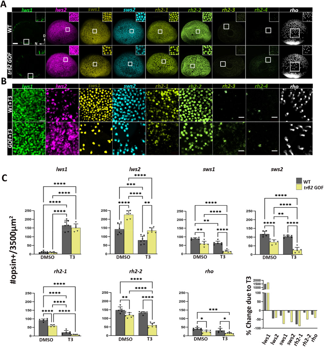 3.1 Quantification of photoreceptor populations in trβ2 gain-of-function transgenics together with thyroid hormone (TH) treatment