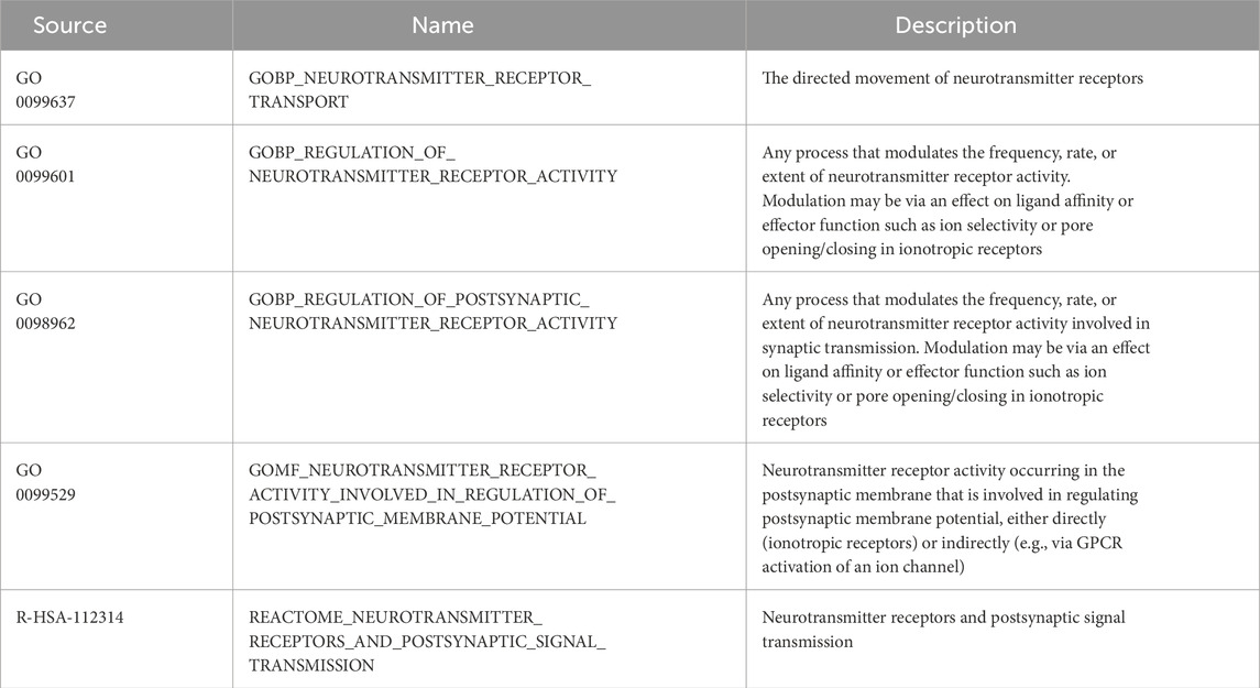 Table 2. Neurotransmitter signaling-related gene sets from the Molecular Signatures Database (MSigDB).