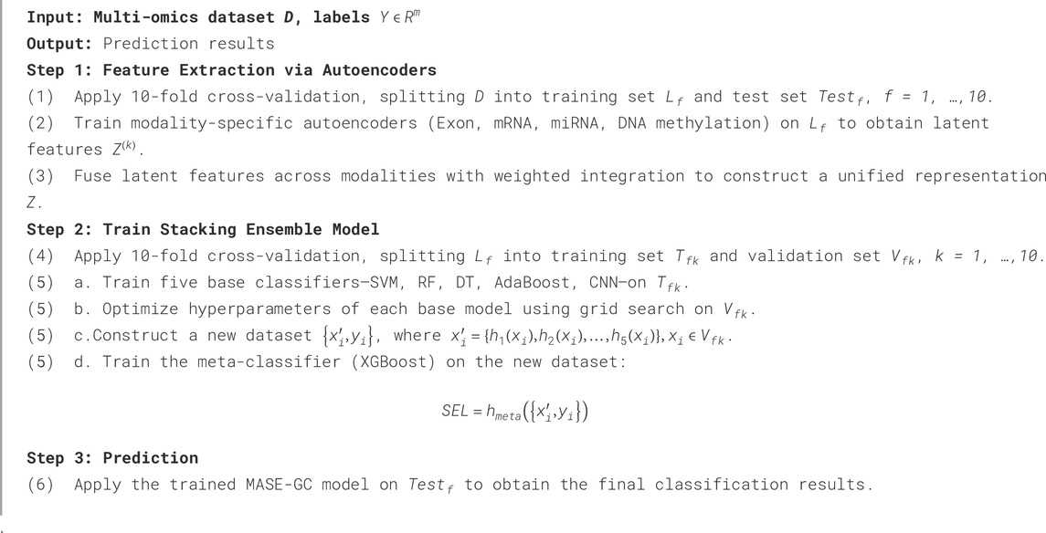 Citation: Liu D, Che Z, Xu G and Huang Y (2025) MASE-GC: a multi-omics autoencoder and stacking ensemble framework for gastric cancer classification. Front. Cell Dev. Biol. 13:1704237. doi: 10.3389/fcell.2025.1704237