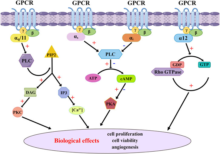 Emerging experimental and clinical data have demonstrated that GPCRs regulate processes such as proliferation signal transduction, cell cycle, apoptosis, growth inhibitory factors, angiogenesis, and cell proliferation and migration, which play critical roles in cancer development and progression (O'Hayre et al., 2014). Increasing evidence suggests that GPCRs, G proteins, and their downstream signaling targets are involved in regulating the maintenance, differentiation, and multipotency of cancer stem cells (Chaudhary and Kim, 2021). Aberrant overexpression of GPCRs and their activation by autocrine and paracrine agonists released by tumor or stromal cells represent the most common strategy employed by cancer cells to stimulate GPCR signaling networks (Bar-Shavit et al., 2016). Currently, drugs targeting GPCRs have shown excellent therapeutic efficacy, owing to their ability to target GPCRs, like many other types of cell surface proteins, in several malignancies (Soond and Zamyatnin, 2020; Bair et al., 2024). Understanding the mechanistic relationship between GPCRs and malignant tumors is crucial, as they represent feasible targets for cancer treatment development.