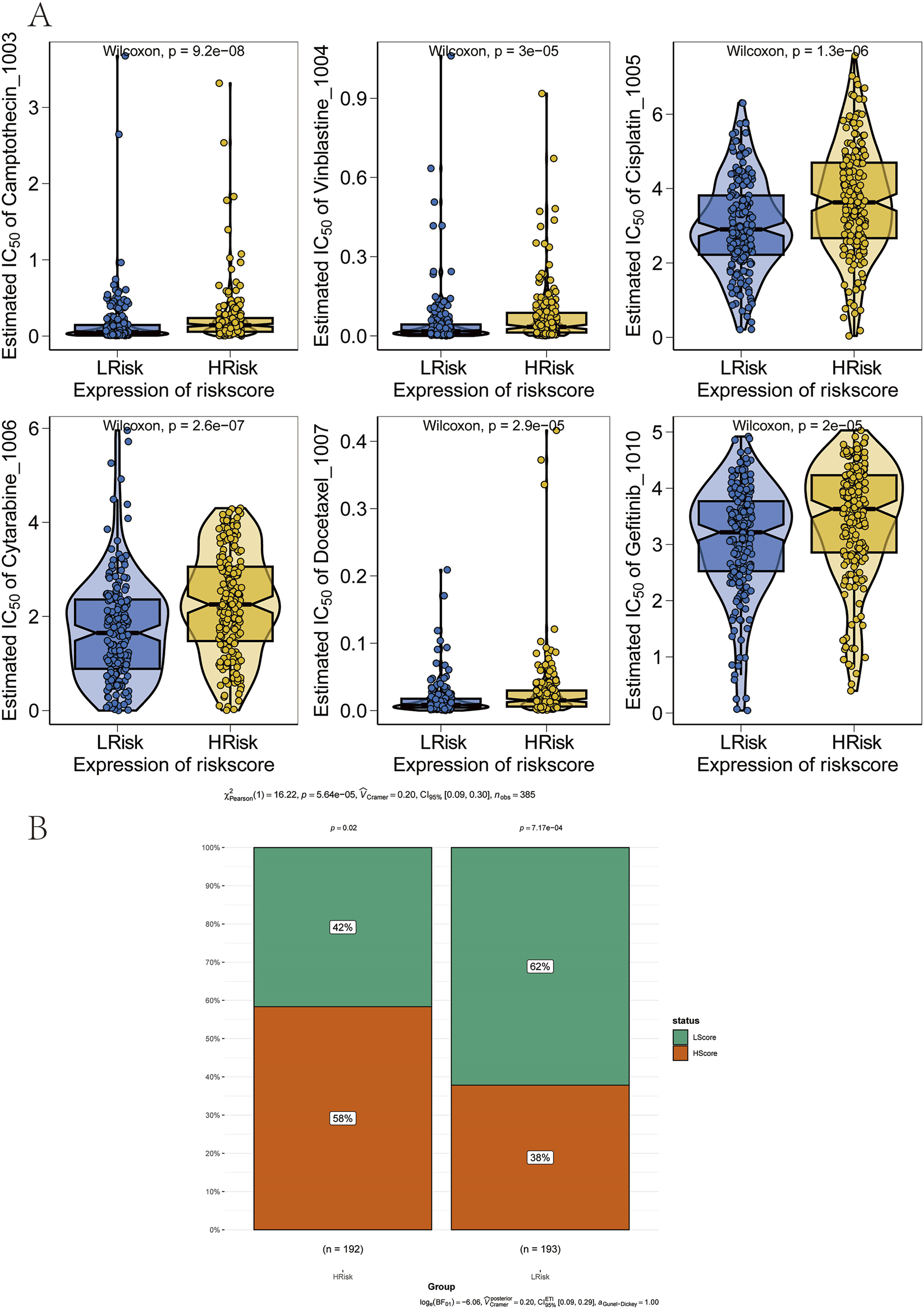 The chemotherapeutic sensitivity of each tumor sample was predicted using the R package “oncoPredict”, with reference to the Genomics of Drug Sensitivity in Cancer (GDSC) database (https://www.cancerrxgene.org/). A regression approach was applied to estimate the IC50 values for each chemotherapy drug, and the GDSC training set was used for 10-fold cross-validation to assess regression and prediction accuracy. All analyses were conducted with default parameters, including the ComBat algorithm for batch effect correction and averaging of expression values for duplicate gene symbols.