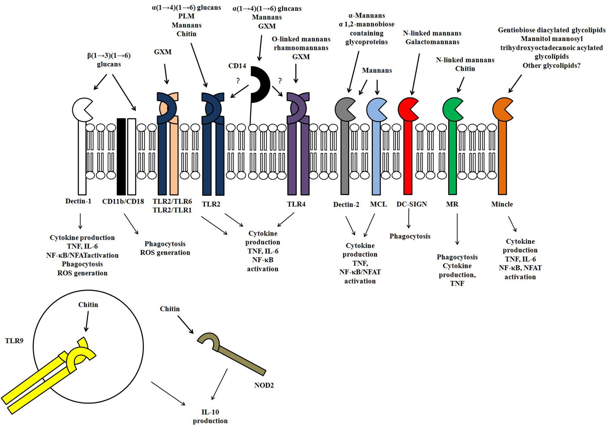 Pattern recognition receptors involved in the recognition of fungal carbohydrates