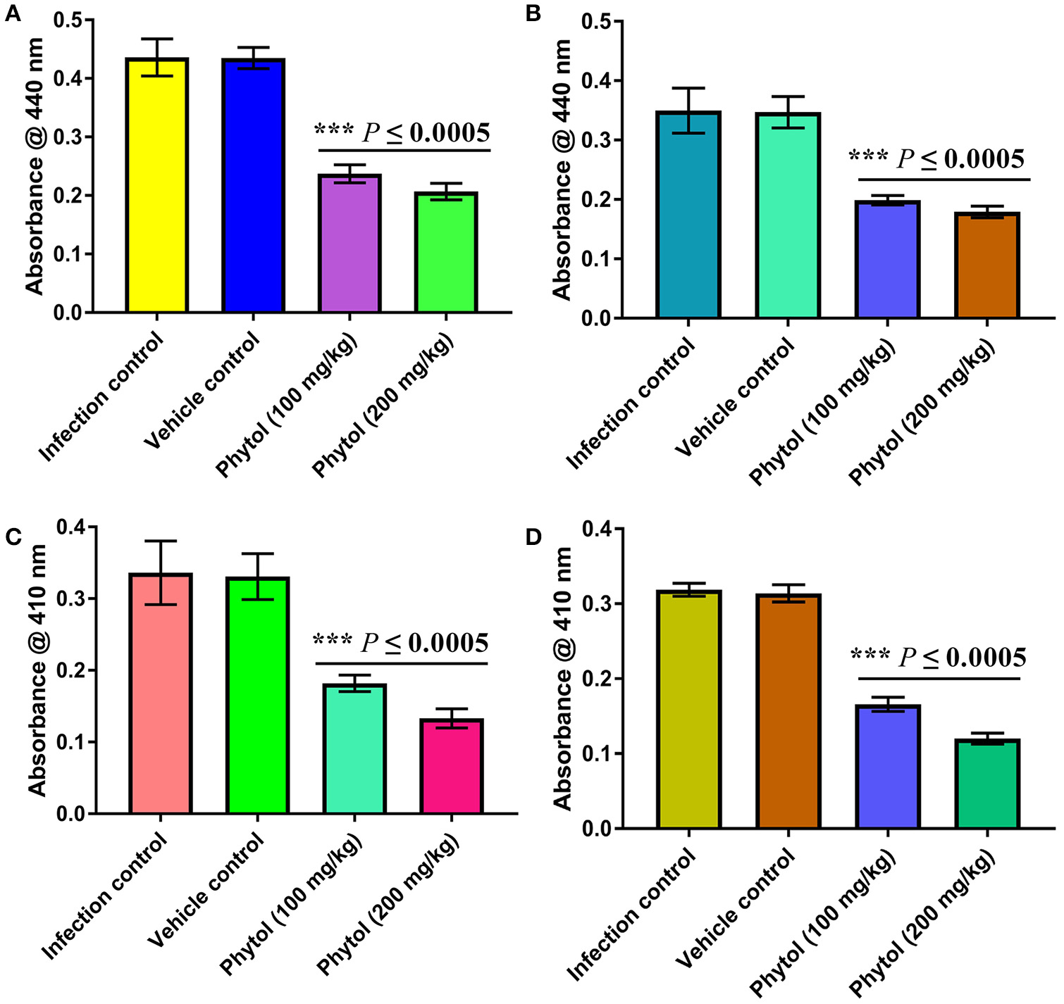 For in vitro study, one milligram of phytol (97%, mixture of isomers, catalog no. 139912, Sigma-Aldrich, St. Louis, MO, USA) was dissolved in 1 ml of methanol as stock solution and stored at 4°C till further use. For in vivo study, 200 mg of phytol was dissolved in 5 ml of corn oil as stock solution and stored at room temperature till further use. The maximum amount of methanol (10 μl, 1%) and corn oil (750 μl) was used as the vehicle controls (negative controls) for in vitro and in vivo assays, respectively.