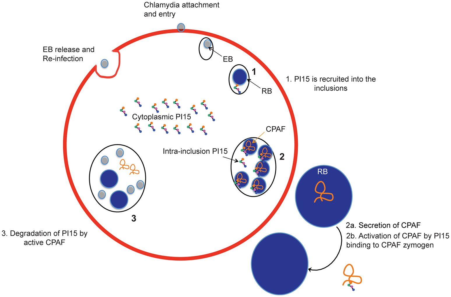 chlamydia, CPAF activation, peptidase inhibitor PI15, chlamydial inclusion, chlamydia serine proteases