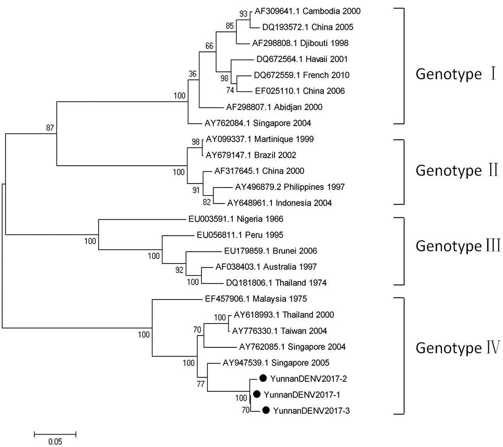 JEV and DENV were detected simultaneously, indicating that these viruses co-circulate in Yunnan province and implying that co-infection by the viruses is possible. Though the detection of the virus is not sufficient to prove transmission, detection of co-circulation of DENV and JEV in the same geographic location is important (Dodson and Rasgon, 2017; Dodson et al., 2018). The simultaneous detection of the genes of two viruses may bring a new challenge to the control of DENV.