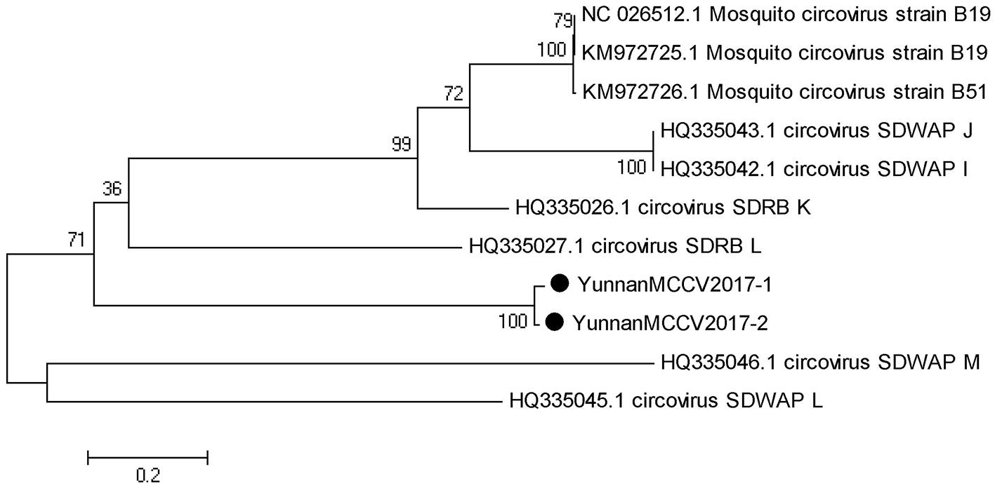 Clearly, our results show that the distribution of viruses in mosquitoes collected in Yunnan province is dependent on the geographical location of mosquitoes. However, the present work explored only a small portion of the virome of mosquitoes in this region. More study in different areas and countries might be needed to assess the diversity of mosquito-borne viruses. In conclusion, our findings provide a useful insight into viral isolation and characterization of DENV and novel circovirus, which could be applied in the future.
