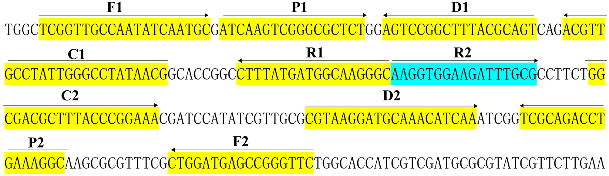 | R2 | 5′-AAGGTGGAAGATTTGCG-3′ | 17 nt |