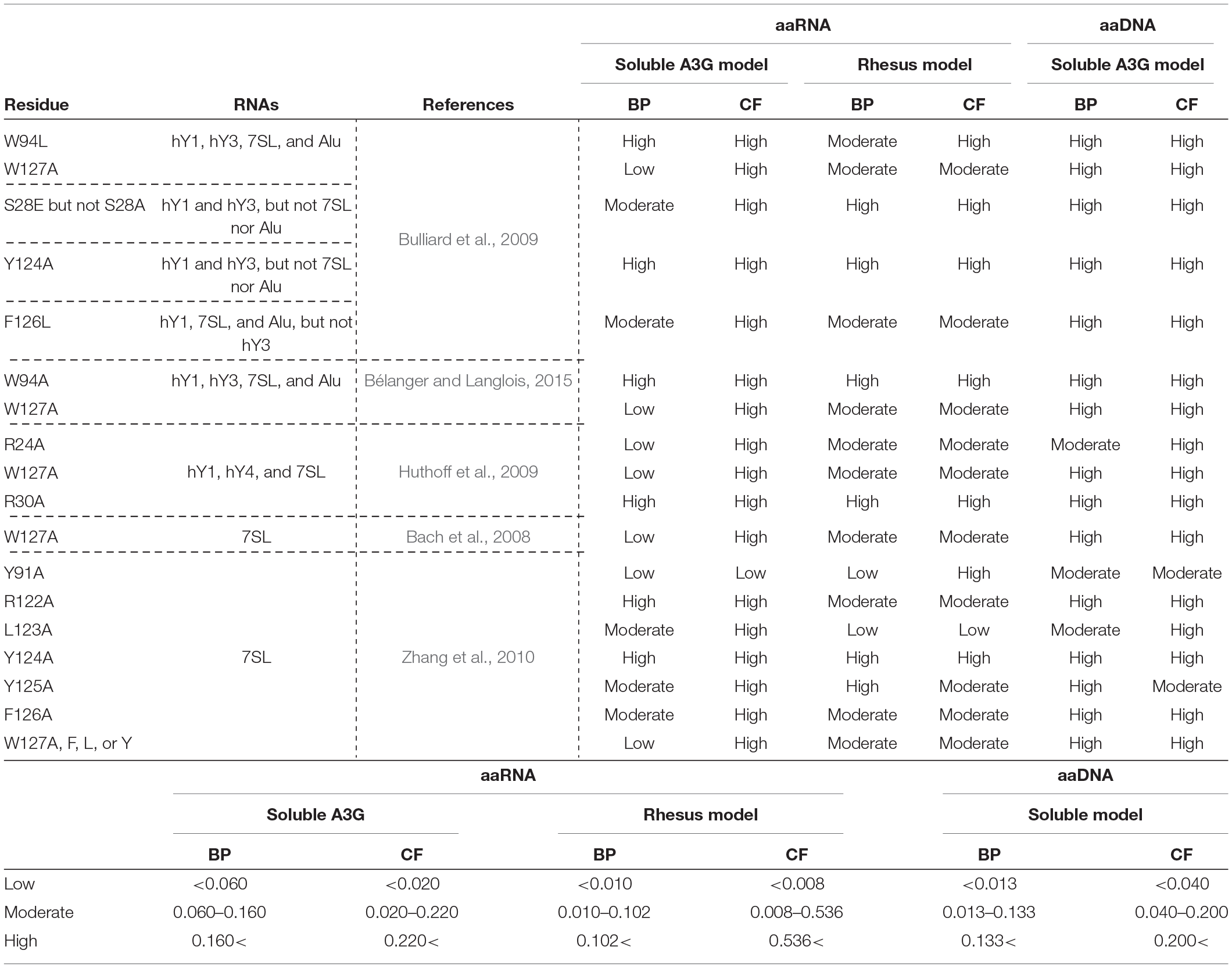 Lavens D. Peelman F. Van Der Heyden J. Uyttendaele I. Catteeuw D. Verhee A. (2010). Definition of the interacting interfaces of Apobec3G and HIV-1 Vif using MAPPIT mutagenesis analysis. Nucleic Acids Res.38, 1902–1912. 10.1093/nar/gkp1154