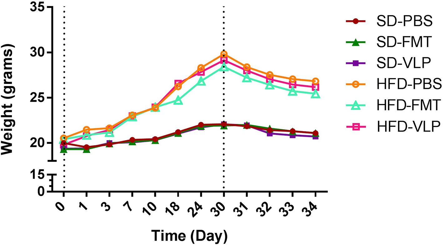 All mice in SD-PBS and HFD-PBS groups received a 0.02-μm-filtered PBS blank solution as a control treatment.