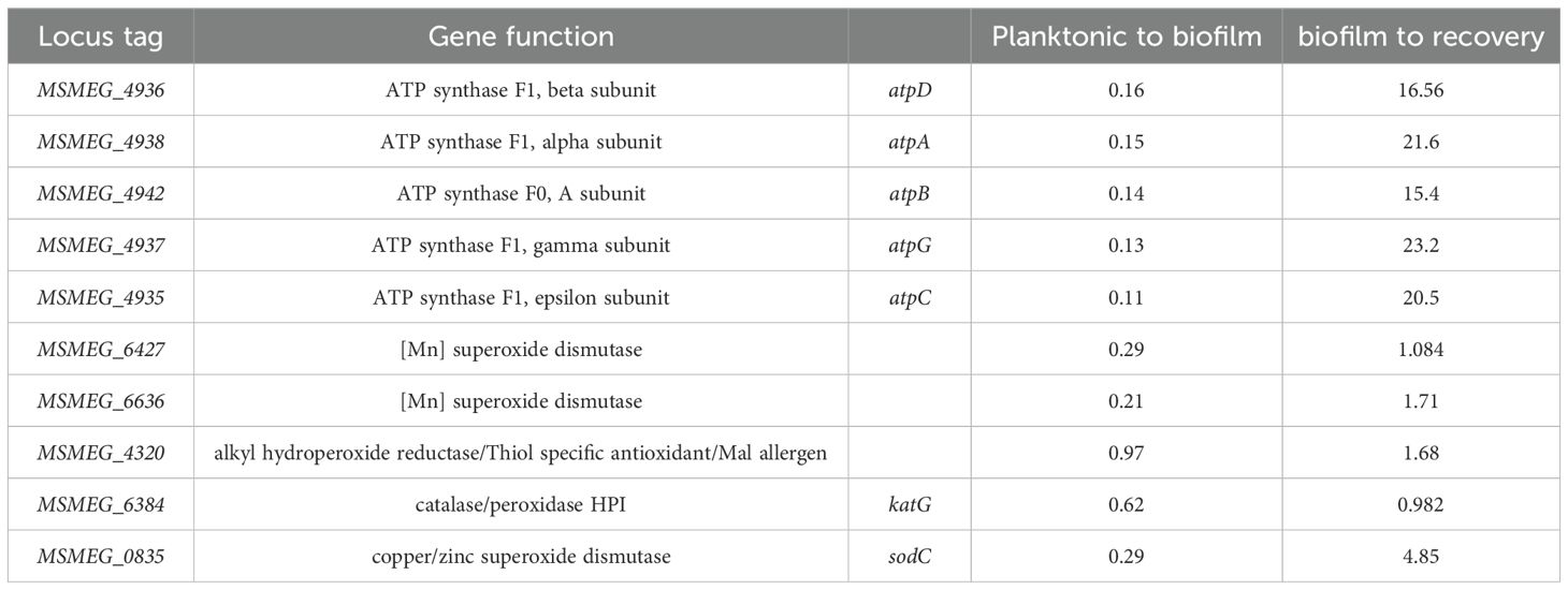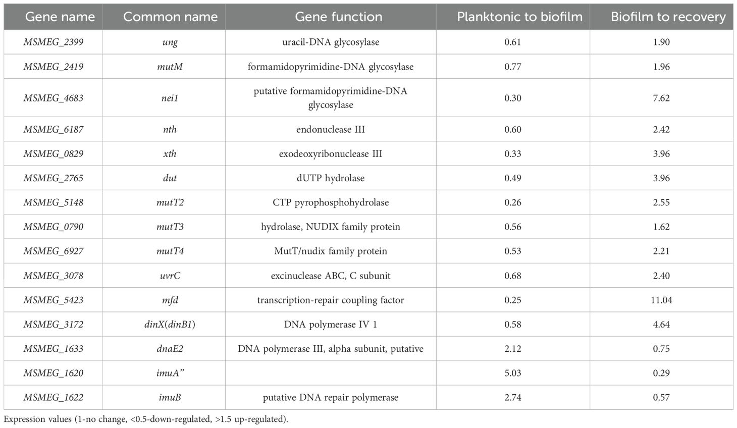 Table 4. Genes involved in DNA repair that are differentially regulated during biofilm formation and recovery stages.
