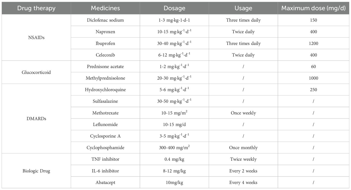 Li, C. F., Huang, Y. F., Wang, Z. H., Zheng, Y. Y., Huang, W., Zhang, Y., et al. (2022). Recommendations of diagnosis and treatment of juvenile idiopathic arthritis in China. Zhonghua. Nei. Ke. Za. Zhi. 61, 142–156. doi: 10.3760/cma.j.cn112138-20210929-00666