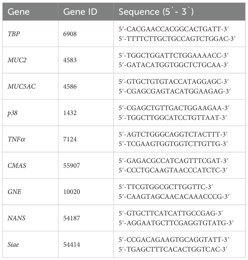Mucin genes play an important role in protecting epithelial cells from external threats (Mettelman et al., 2022). Mucins are classified into membrane-associated and secreted types. Secreted mucins, such as MUC2 and MUC5AC, are highly glycosylated proteins that form a physical barrier to protect cells (Hollingsworth and Swanson, 2004). Investigating these genes provides insight into pathogenesis and host defense mechanisms. TNFα is a key component of the primary immune response to viral infections, promoting cytokine production and contributing to inflammation (Newton et al., 2016). The MAP kinase family, including p38, is involved in cellular processes such as growth, differentiation, and apoptosis (Hollingsworth and Swanson, 2004; Ono and Han, 2000). p38 is activated by extracellular stimuli, making it a relevant marker for studying cellular stress responses (Banerji and Saroj, 2021).