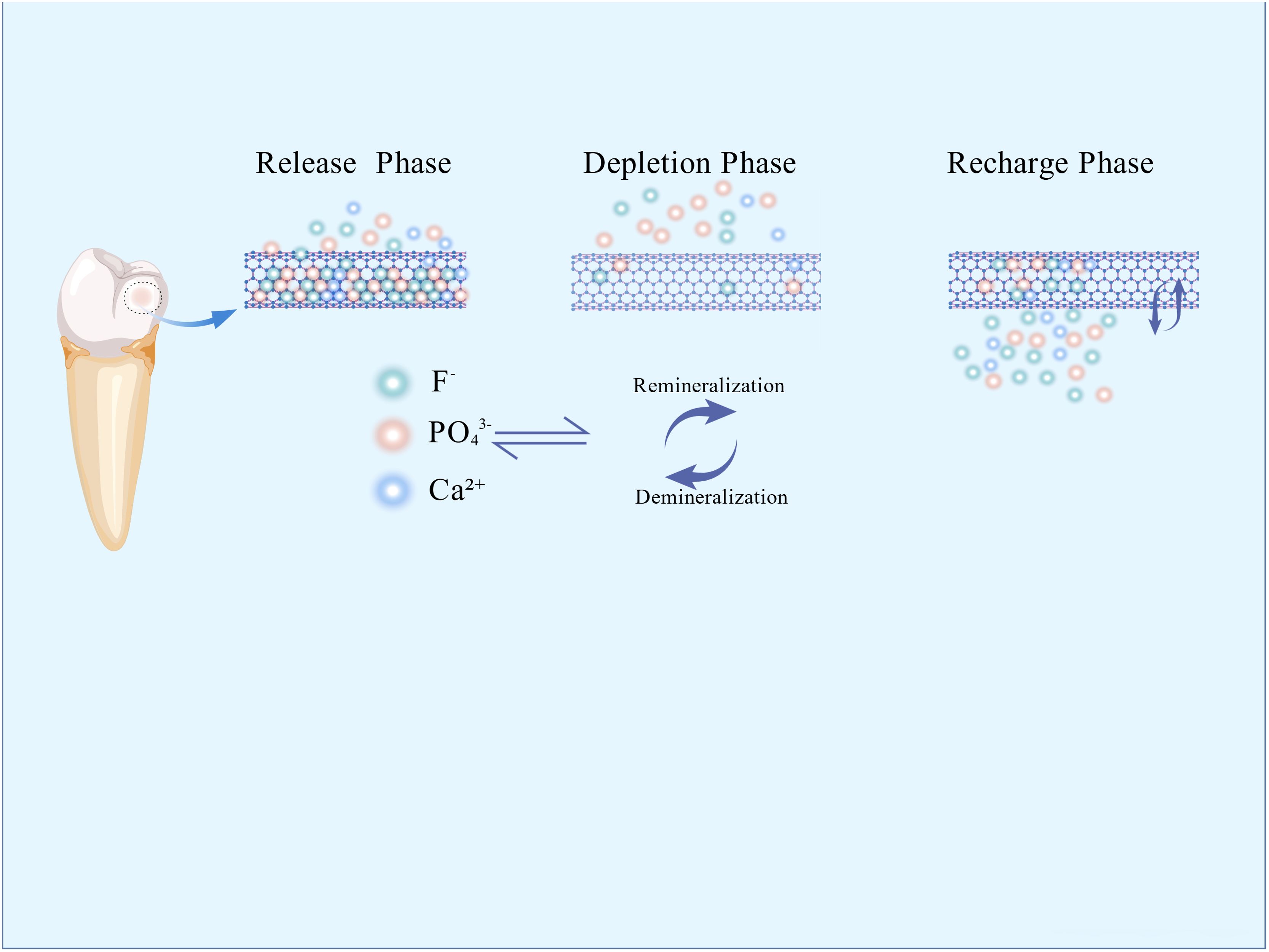 As widely documented, fluoride combats dental caries through three mechanisms: inhibiting demineralization, promoting remineralization, and suppressing bacterial metabolism (Monjarás-Ávila et al., 2025). To address the transient fluoride release from existing restorative materials, rechargeable fluoride nanomaterials offer a new way for managing secondary caries.