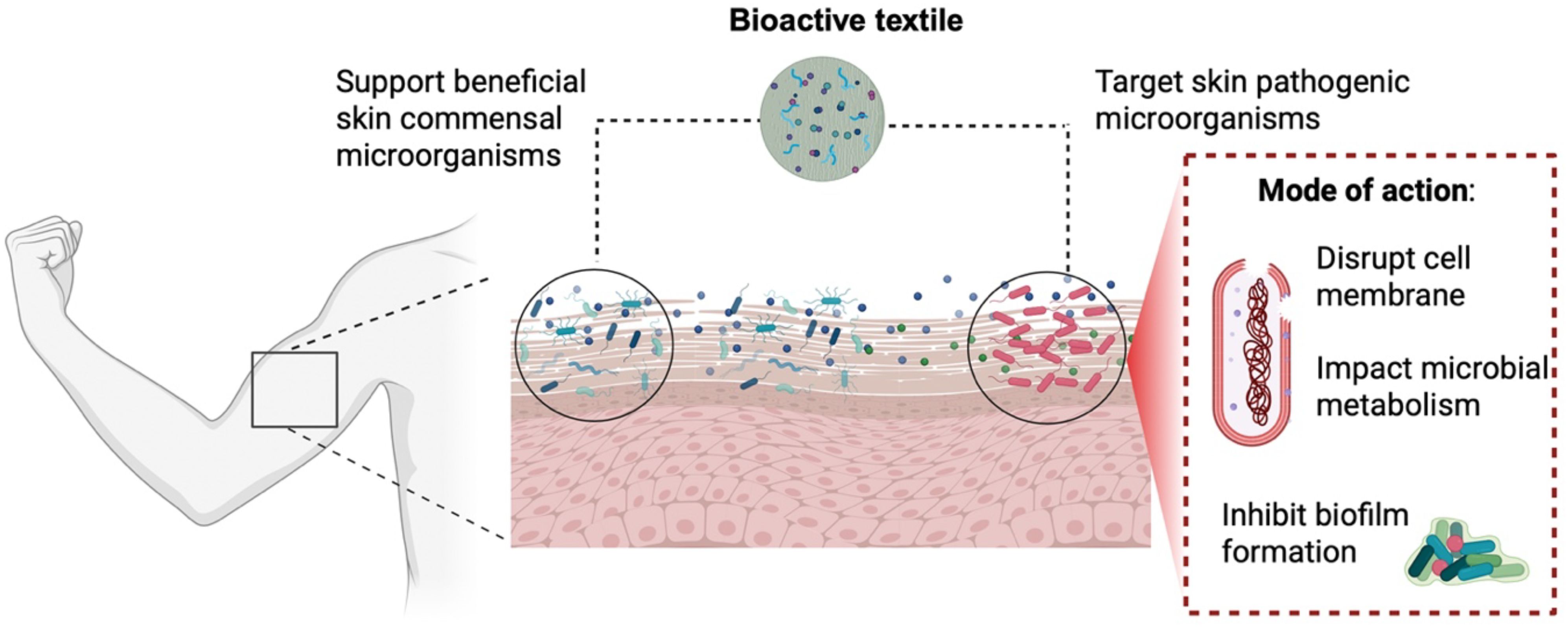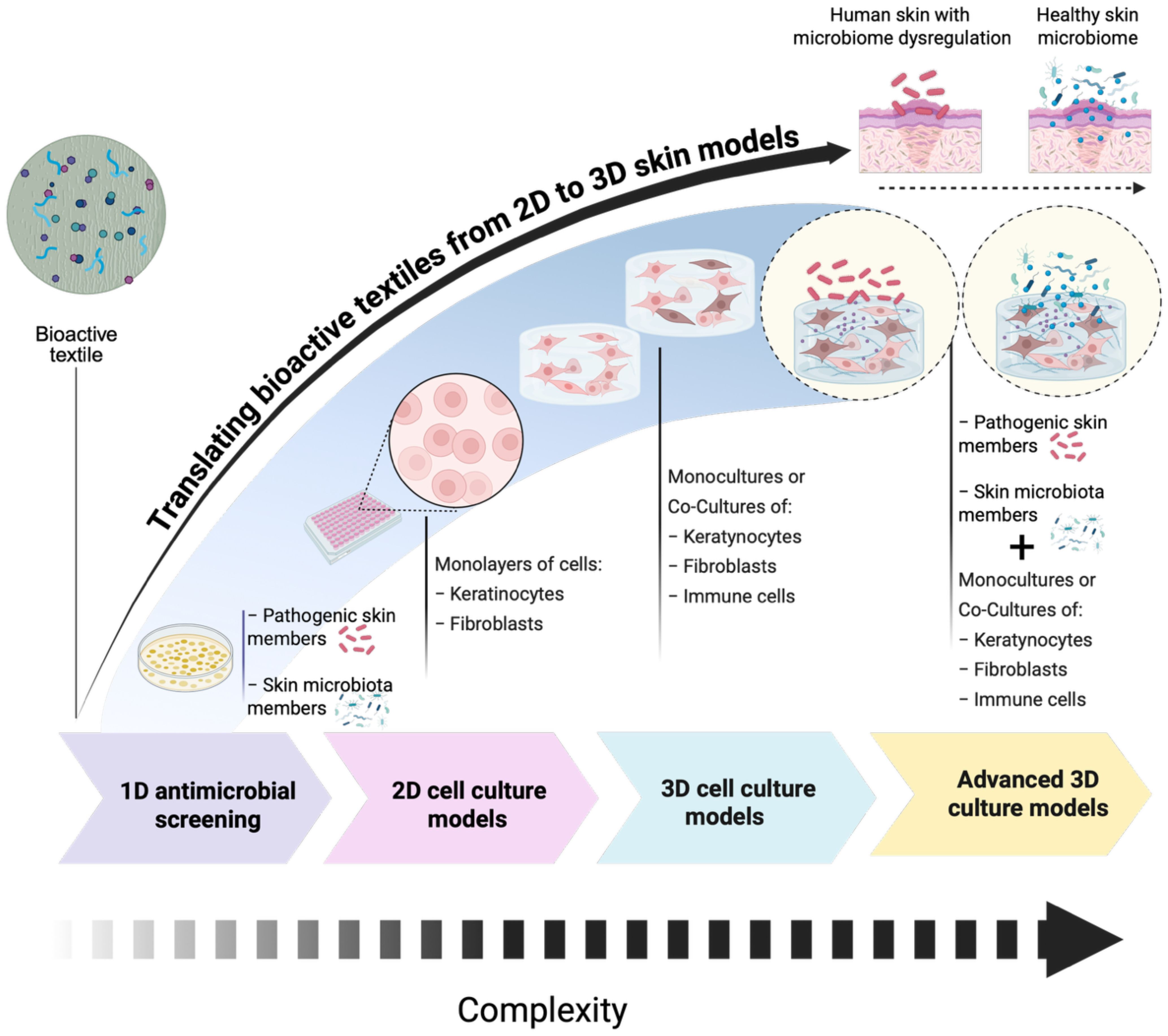 Keywords: bioactive textiles, skin microbiome, 3D skin models, antimicrobial strategies, microbiome-safe materials