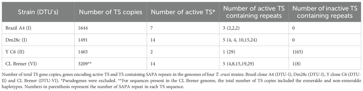 3.1 Gene repertoire encoding TS in different T. cruzi strains and the presence of SAPA repeats
