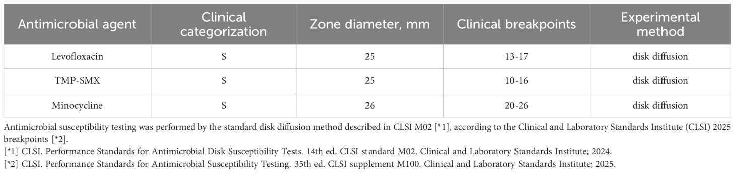 This bacterium exhibits intrinsic resistance to various classes of antibiotics, including carbapenems, aminoglycosides, trimethoprim, and fosfomycin. Its resistance mechanisms encompass decreased cell membrane permeability, chromosomally encoded efflux pump systems, the production of β-lactamases, and the activity of aminoglycoside-modifying enzymes (Gil-Gil et al, 2020). According to the 2024 data from the China Antimicrobial Surveillance Network (CHINET, www.chinets.com) (Ding et al., 2024), the resistance rates of S. maltophilia to trimethoprim-sulfamethoxazole (TMP-SMX), tigecycline, and minocycline were found to be 6.5%, 5.9%, and 1.4%, respectively.