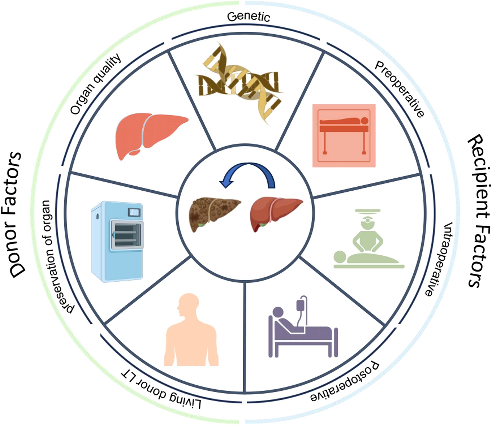 The donor factors primarily involve the quality, maintenance and preservation of organs. Livers from donors with moderate-to-severe fatty liver disease (Xie et al., 2024) and from those of advanced age may increase the risk of postoperative infection in recipients (van Hoek et al., 2012; Reddy et al., 2017). Additionally, a history of diabetes and liver dysfunction in the donor can also affect the rate of bacterial infections after LT. Urrunaga et al. conducted an analysis of the UNOS database and reported that all cohorts of older donors over 50 years of age presented increased risks of morbidity and mortality from sepsis (Lee et al., 2023). An analysis involving 129 patients revealed that donor age was associated with the infection incidence, with an average donor age of 36 years in the infection group and 30.5 years in the infection-free group (Gayowski et al., 1998).