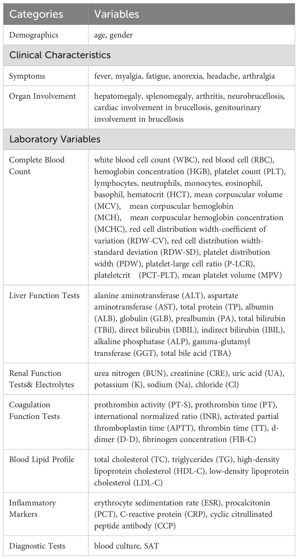 All included patients were treated in strict accordance with the Diagnostic Criteria for Brucellosis (WS 269–2019), following the principles of early, combined, and sufficient antimicrobial therapy (Liu et al., 2022).