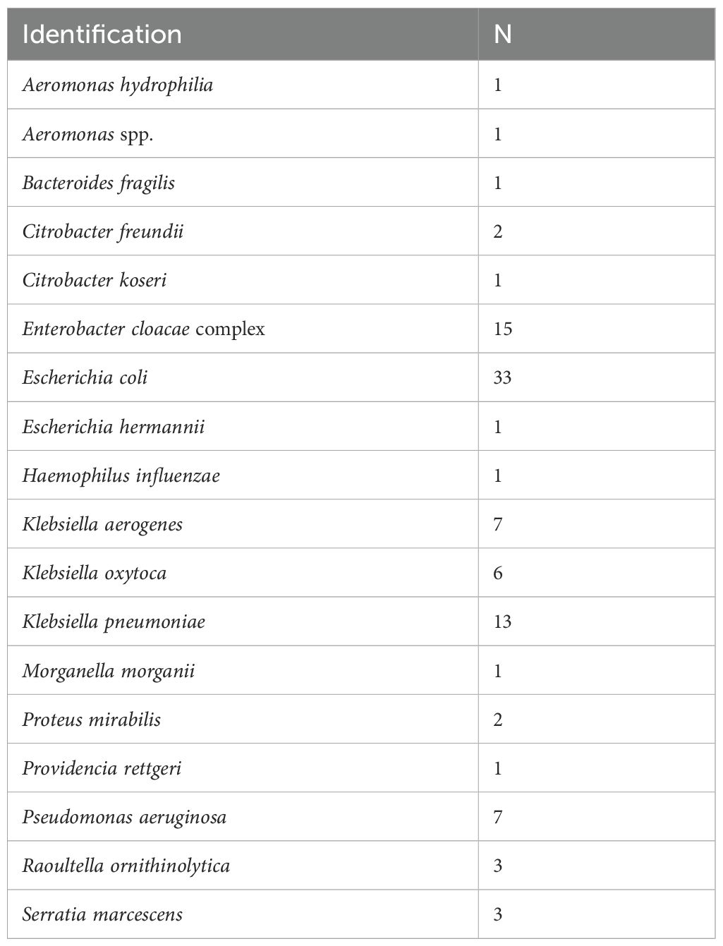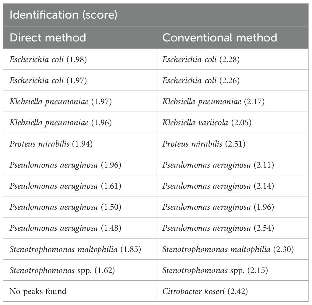 Table 2. Concordant bacterial identification with score ≥ 2.00 between direct and conventional methods.