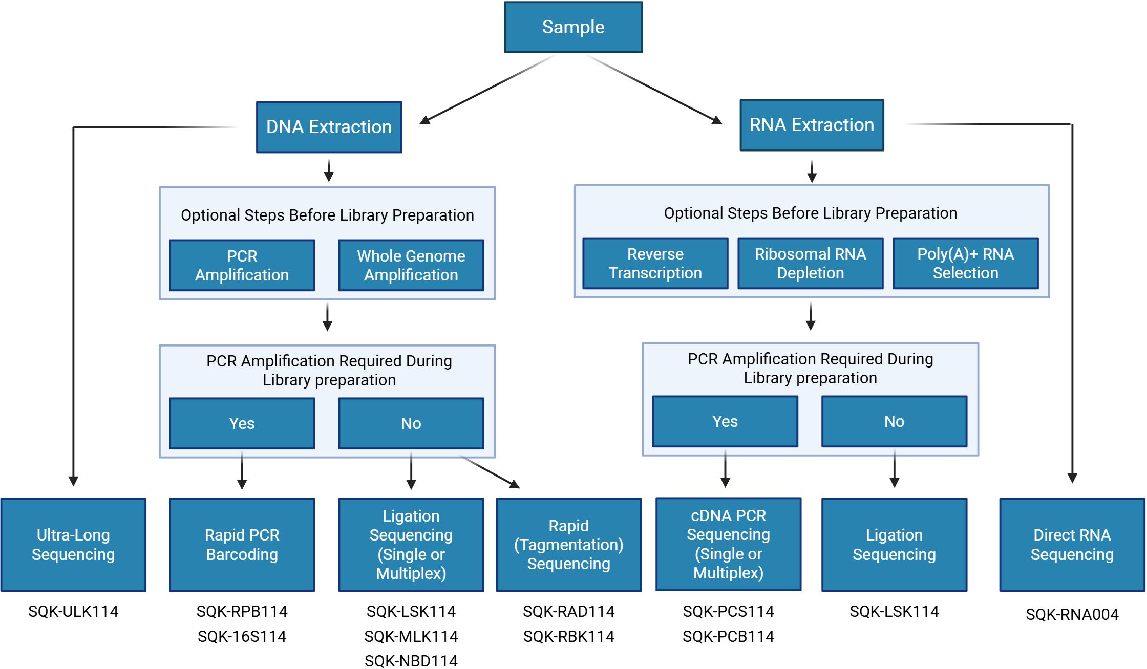 Figure 2. Workflow for selecting the appropriate ONT sequencing kit. Figure was created in https://BioRender.com.