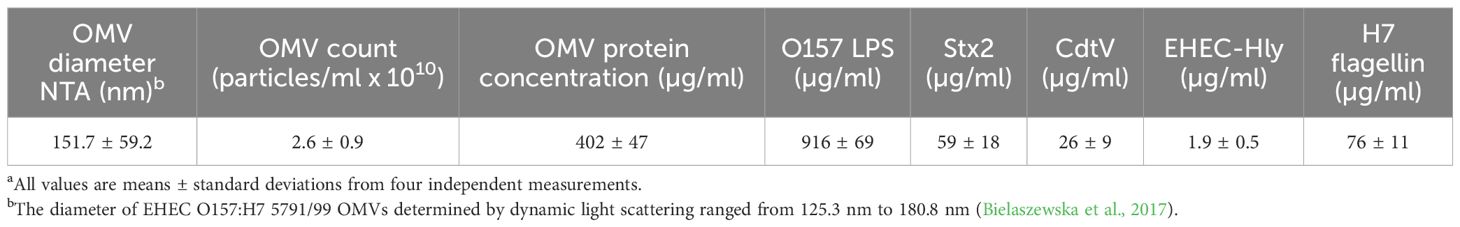 Table 1. Characteristics of OMVs from EHEC O157:H7 strain 5791/99 used in mouse experimentsa.