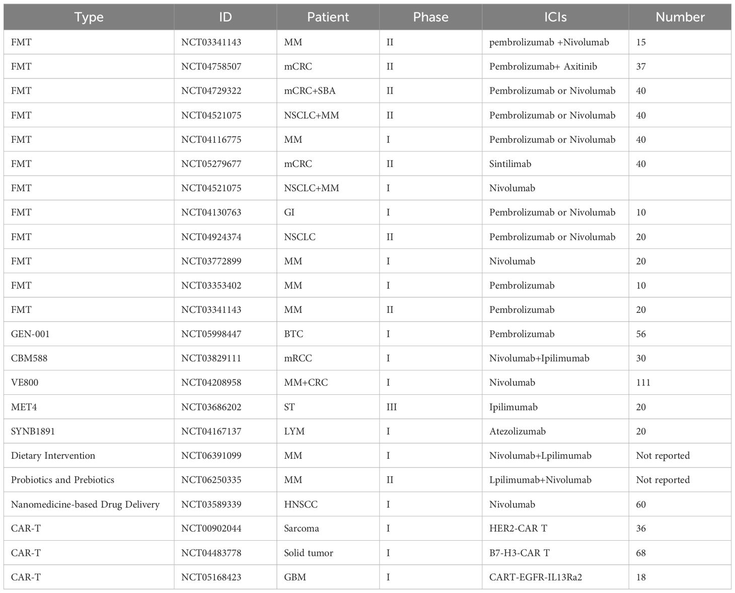 Table 2. Clinical trials of microbiota-based interventions combined with immune checkpoint inhibitors.