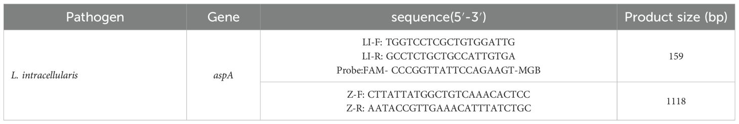 Hu, Z., Lai, R., Xu, W., Guan, R., Zhang, Z., Yan, G., et al. (2025). Establishment of a taqMan quantitative real-time PCR for detecting. Lawsonia intracellularis. Vet. Sci. 12:450. doi: 10.3390/vetsci12050450